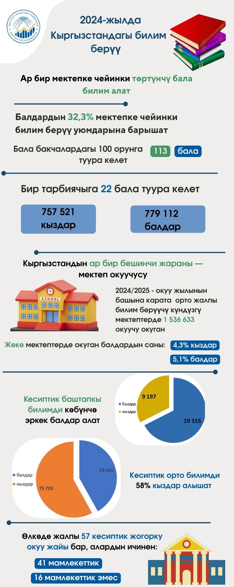 Инфографика: 2024-жылда Кыргызстандагы билим берүү
