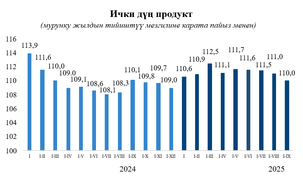 Үстүбүздөгү жылдын январь-сентябрында ички дүӊ продукттун өсүшү 10,0 пайызды түздү