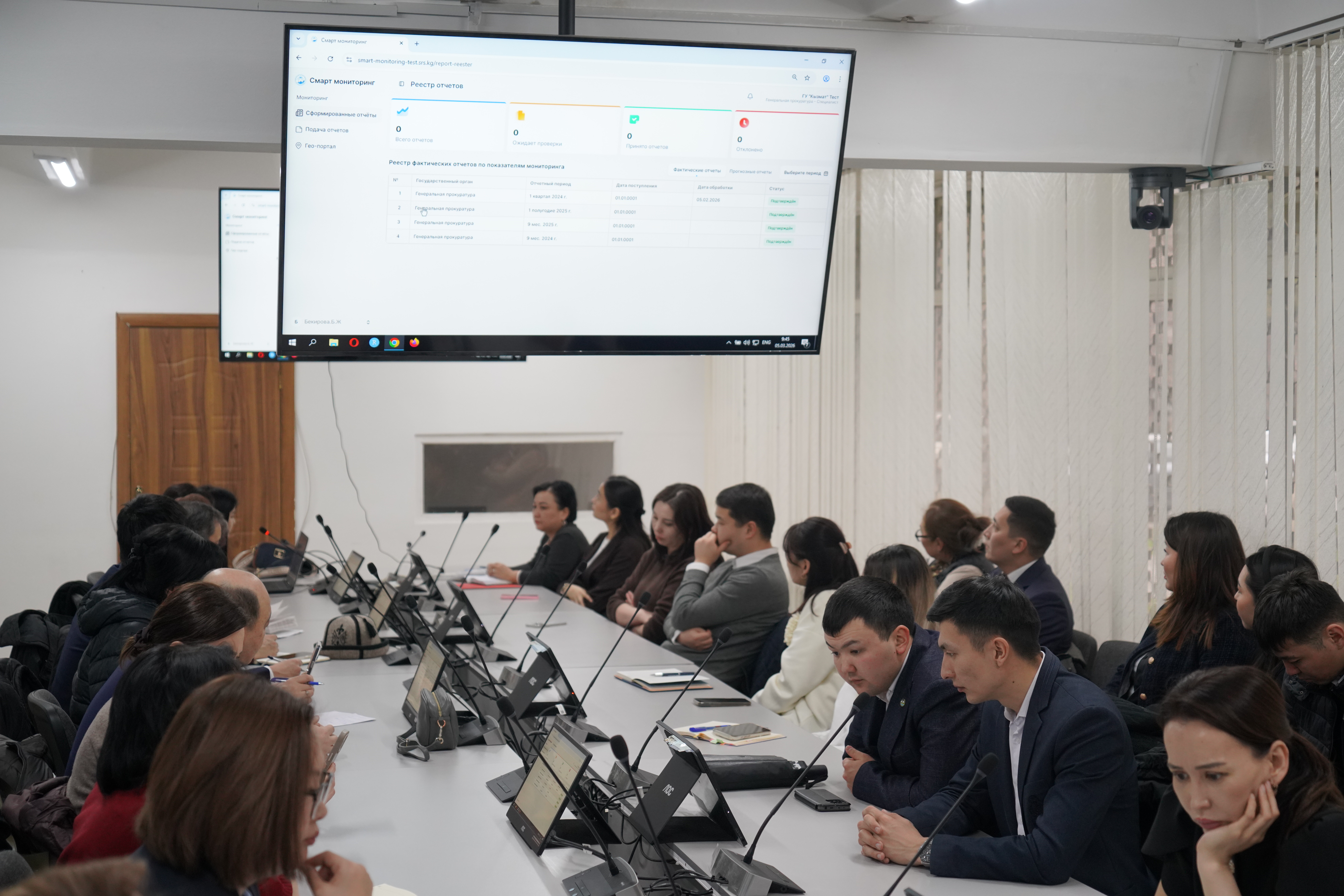 Иш-чаранын жүрүшүндө катышуучуларга "Смарт-мониторинг" системасынын электрондук жеке кабинетинин интерфейси, маалыматтарды киргизүүнүн жана жүктөөнүн тартиби, ошондой эле берилген маалыматтын сапатына карата талаптар сунушталды. Мындан тышкары, системаны өнүктүрүүнүн эң маанилүү кадамдары талкууланды.