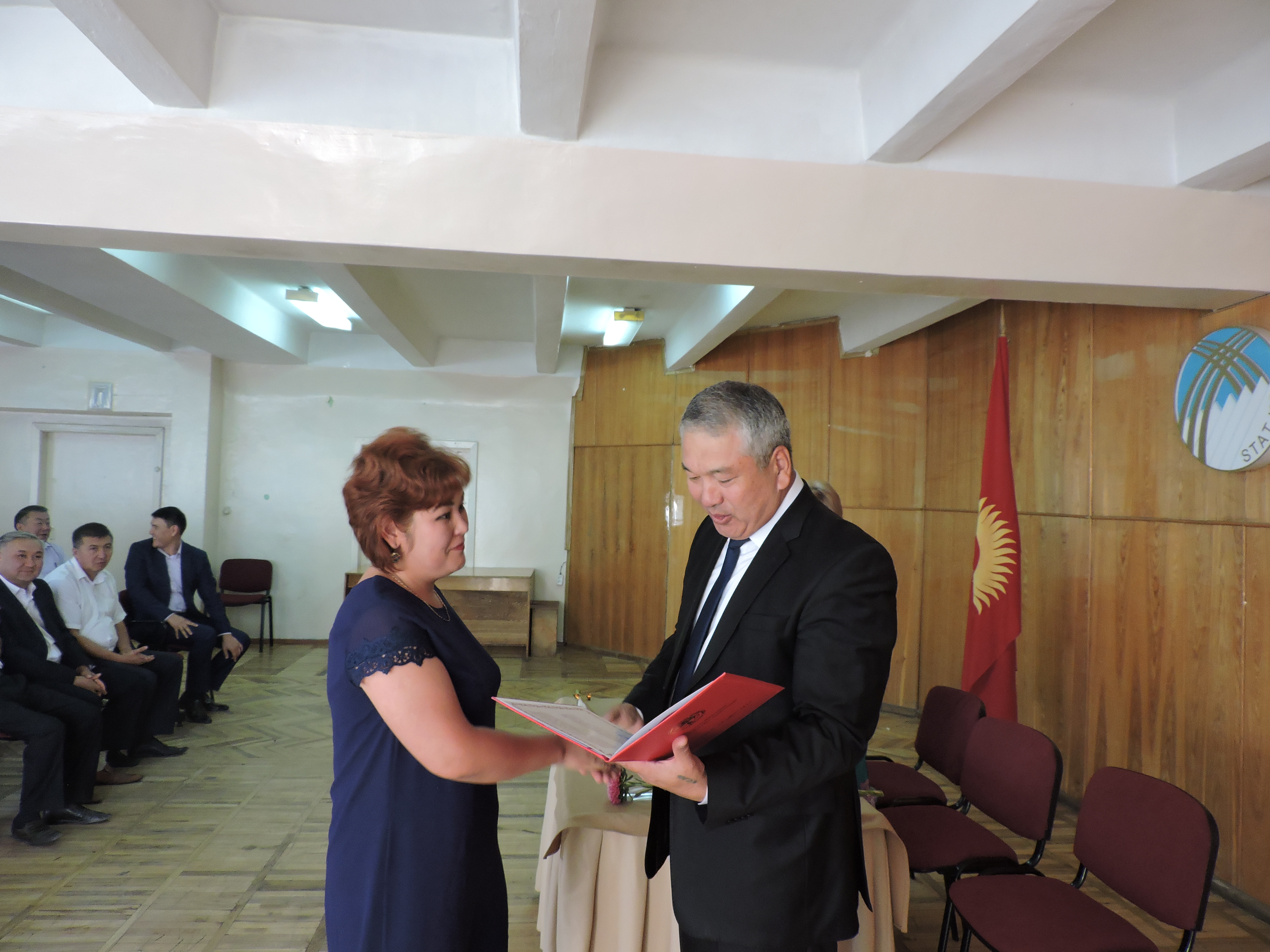 На торжественных мероприятиях были вручены ведомственные награды Нацстаткома и Главного вычислительного центра отличившимся работникам в честь 25-летия Дня независимости Кыргызстана.