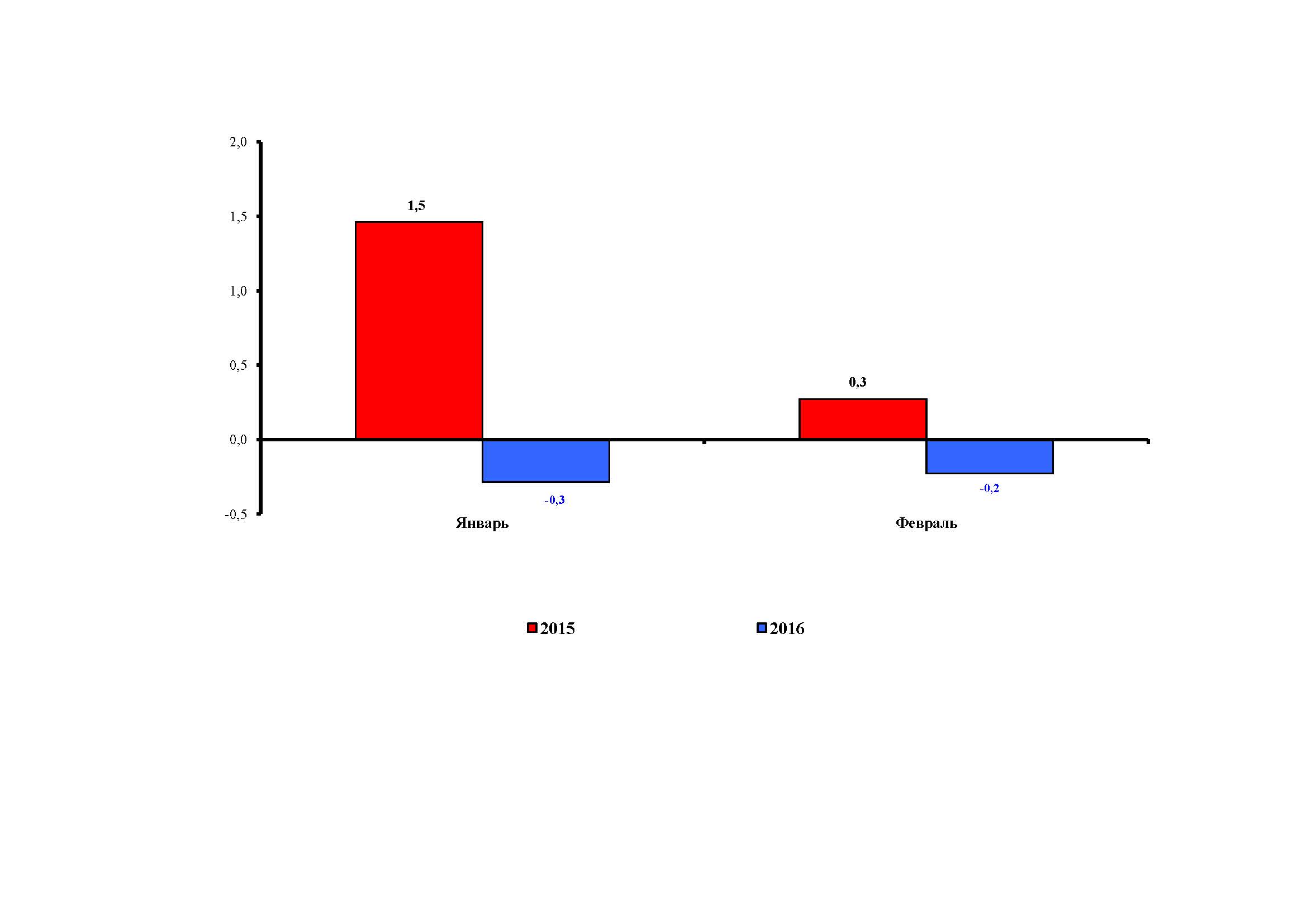 В феврале 2016г. отмечалось снижение потребительских цен на 0,2 процента