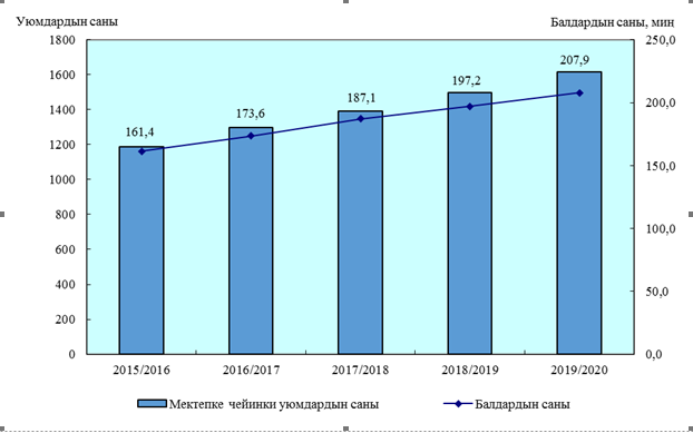 Акыркы жылдары мектепке чейинки билим берүү уюмдарынын инфраструктурасын сактоо жана иш-аракеттерин финансылык жөнгө салуу боюнча көрүлүп жаткан иш-чаралардын натыйжасында, мектепке чейинки уюмдардын санынын, ошондой эле алардагы балдардын санынын да көбөйүү тенденциясы камсыздалды.