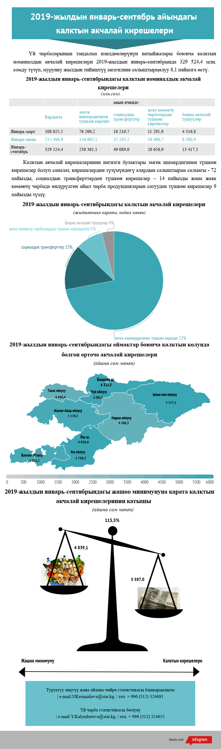 Инфографика: 2019-жылдын январь-сентябрь айындагы калктын акчалай кирешелери