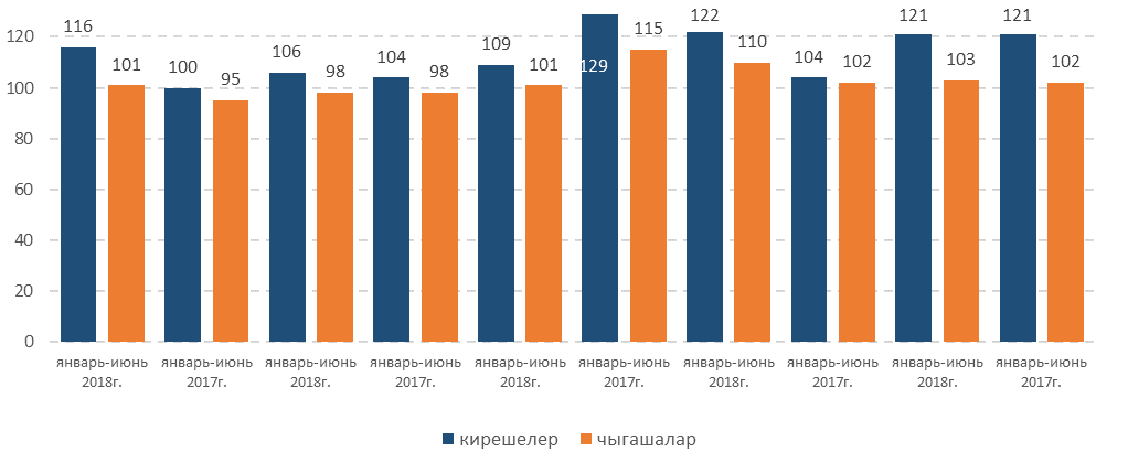 2018-жылдын январь-июнунда республикалык бюджет1 Кыргызстанда, Арменияда, Казакстанда тартыштык, ал эми Беларусия жана Россияда - профицит менен аткарылды. Ушул эле учурда, Кыргызстанда, Арменияда, Казакстанда дефициттин курч кыскарышы байкалды, ал эми Россияда биринчи жолу профицит 2014-жылы байкалган.