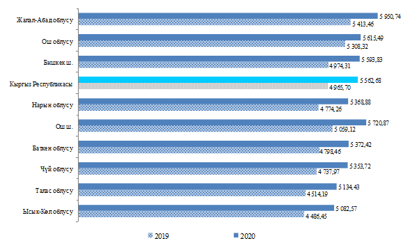 2020-жылдын IV кварталында орточо калктын киши башына жашоо минимумунун көлөмү жалпы республика боюнча 5 562,68 сомду түздү жана өткөн жылдын тиешелүү мезгилине салыштырганда 12 пайызга өстү.