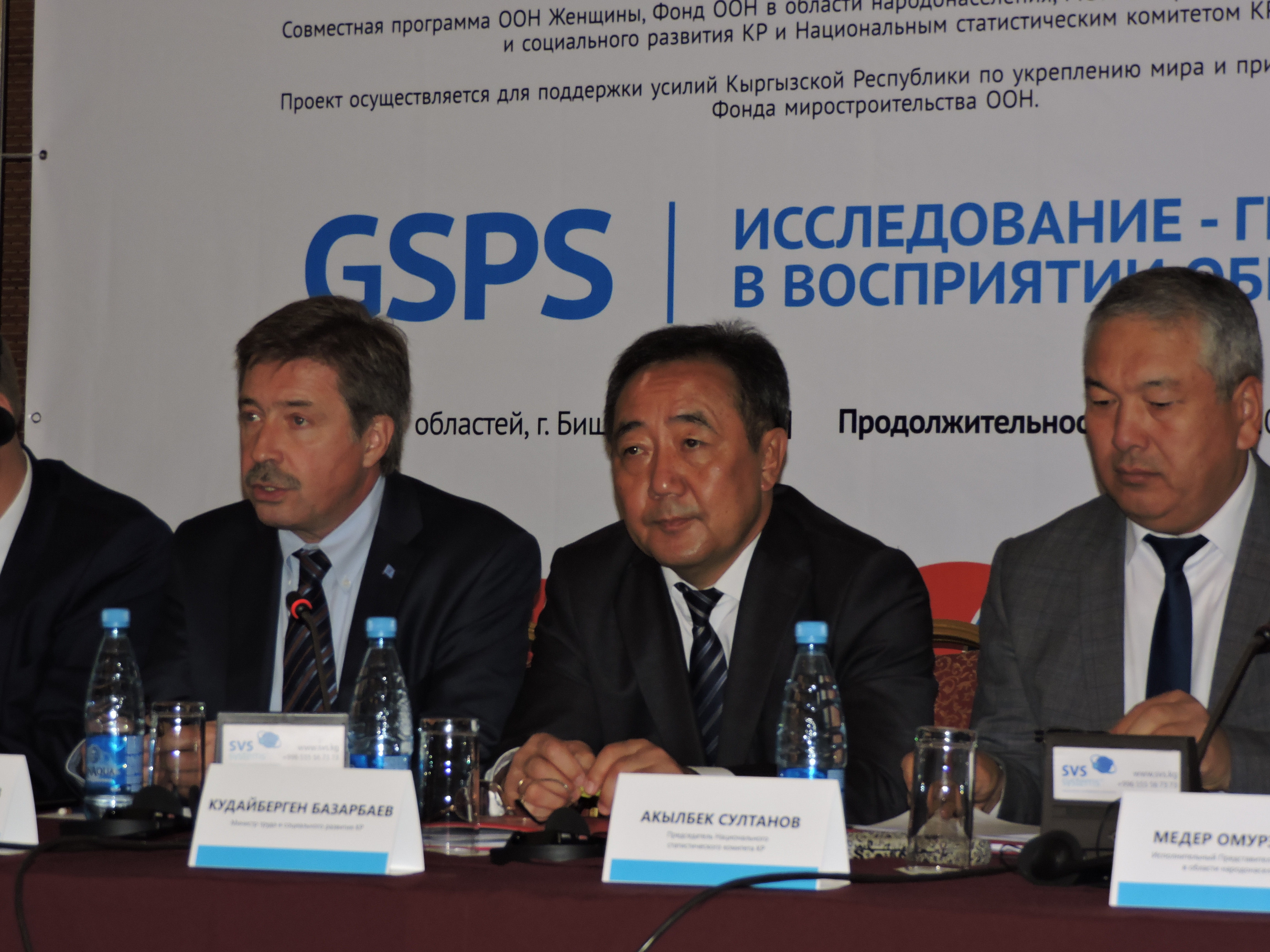 С вступительным словом к собравшимся обратился Акылбек Султанов, который отметил, что к вниманию собравшихся будут представлены результаты работы, проведенной Национальным статистическим комитетом Кыргызской Республики в ходе реализации исследования «Гендер в восприятии общества». Его основными целями являются создание данных на национальном, общинном и общественном уровне и информации о ключевых факторах риска гендерного неравенства и угроз насилия, затрагивающих женщин и девочек.