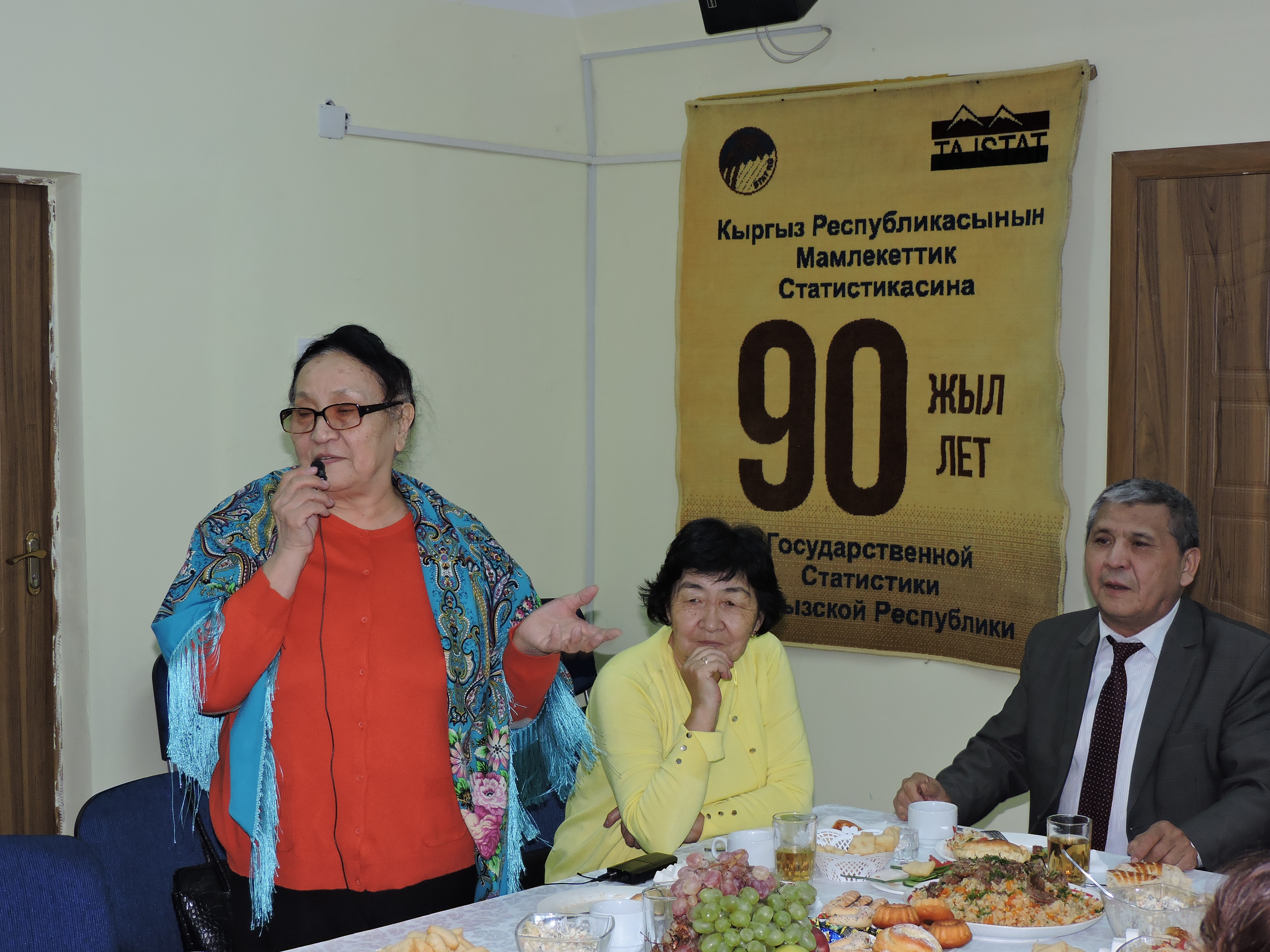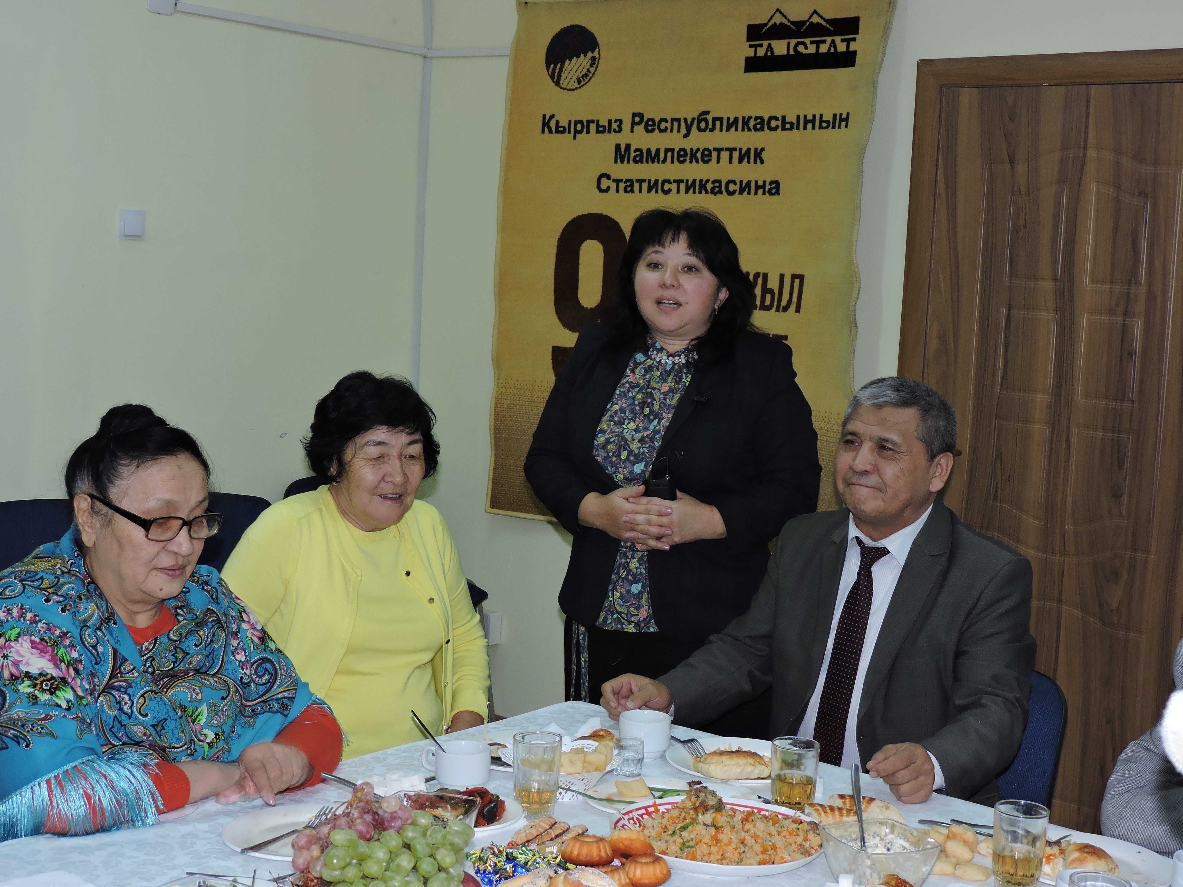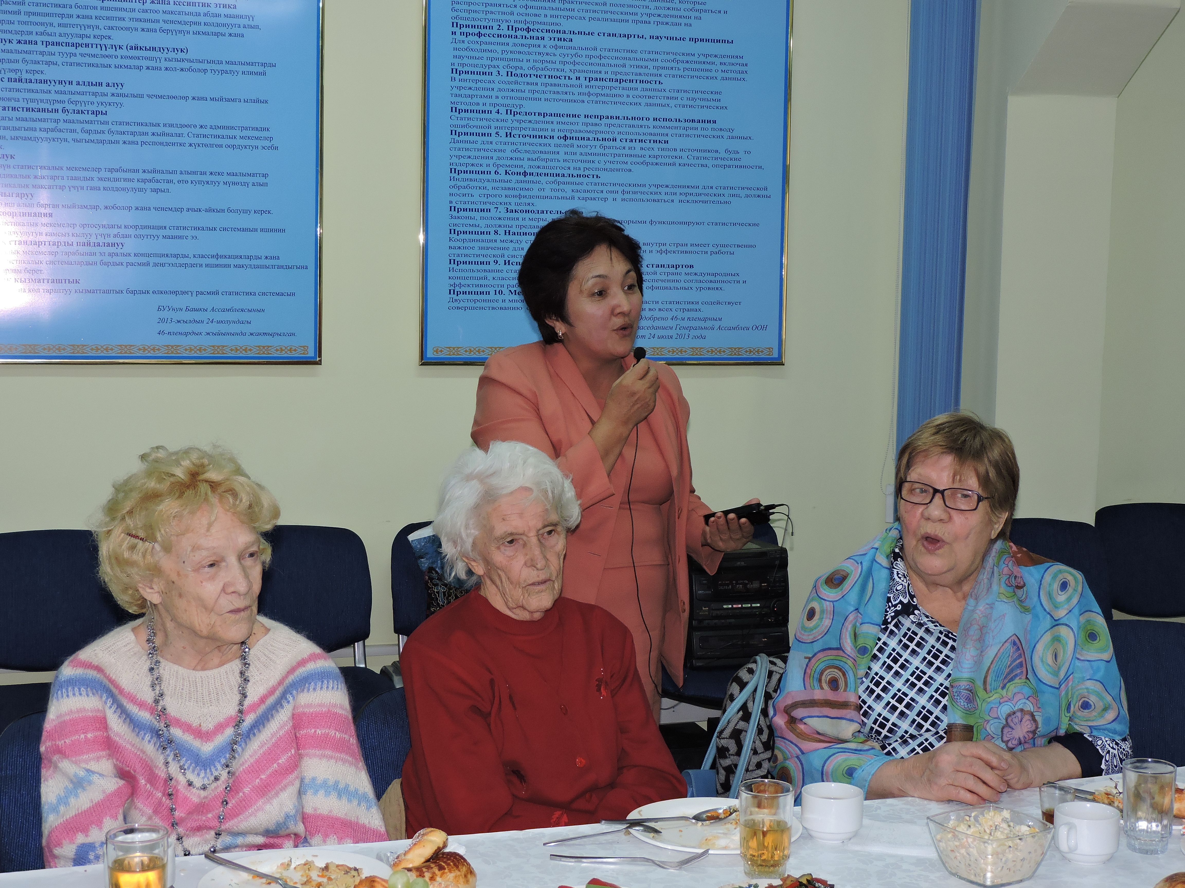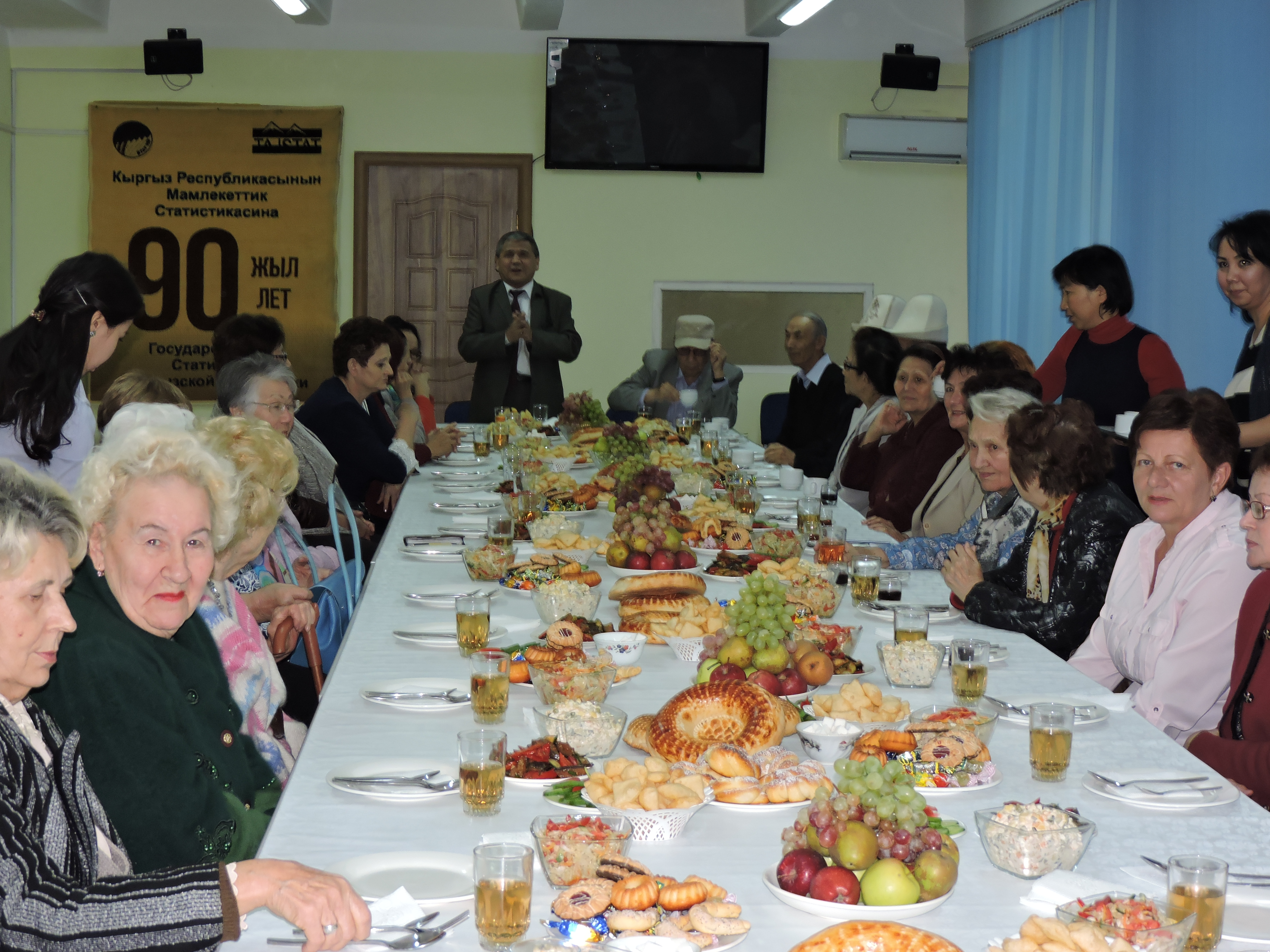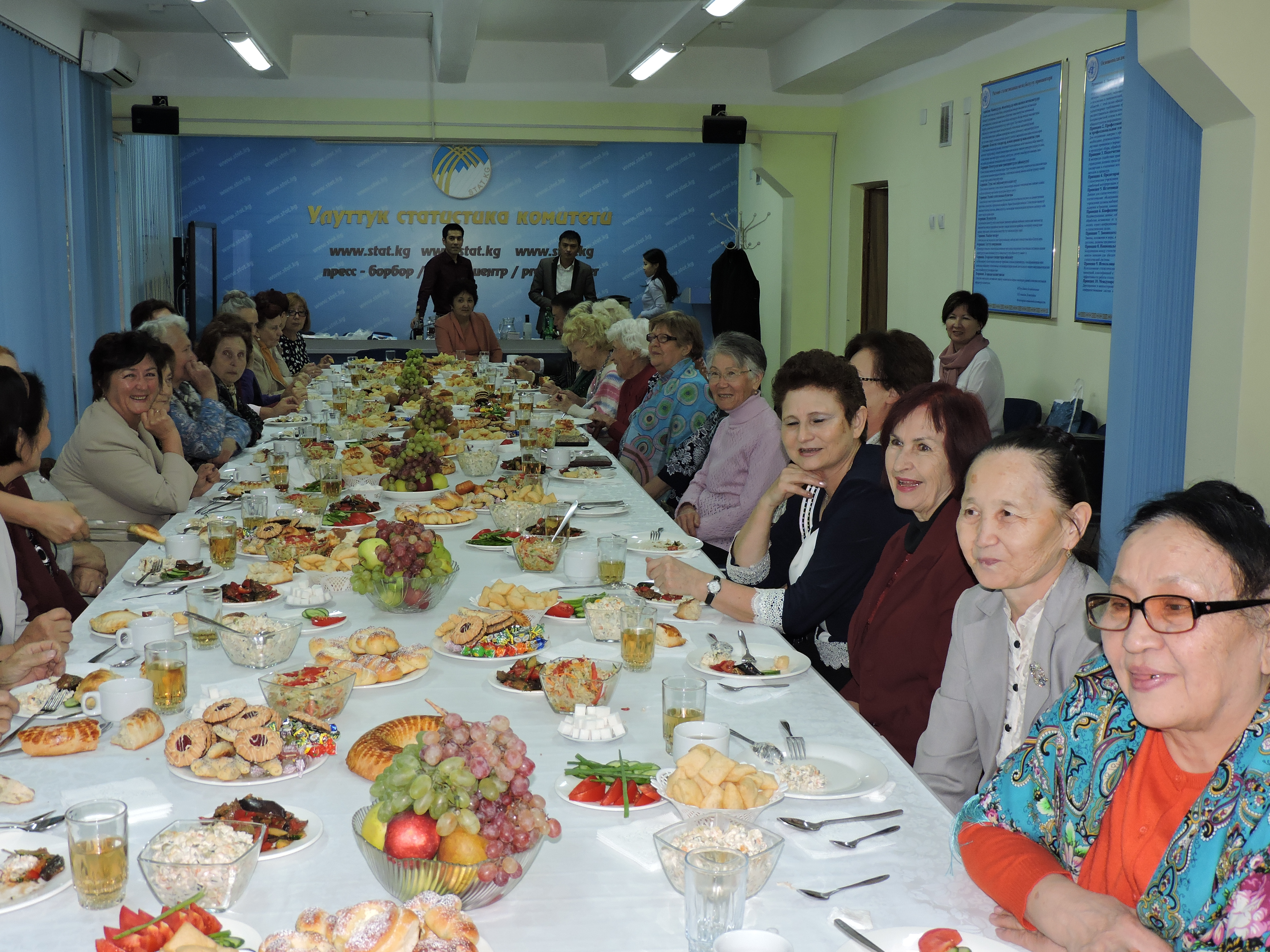 Сегодня, 4 октября, в Нацстаткоме поздравили пенсионеров с Днем пожилых людей. От имени всего коллектива Национального статистического кмитета пенсионеров поздравили заместители председателя Касымбеков Баисбек Касымбекович, Текеева Люксина Айгуфовна и председатель профкома Турдубаева Чинара Сейтказиевна. За праздничным обедом пожилые поздравили друг-друга, пожелали доброго здоровья и долгих лет жизни.