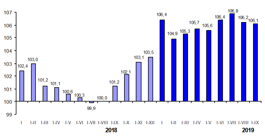 Gross domestic product in January-September 2019, according to preliminary estimates, amounted to more than 398 billion soms and increased by 6.1 percent compared to January-September 2018.
