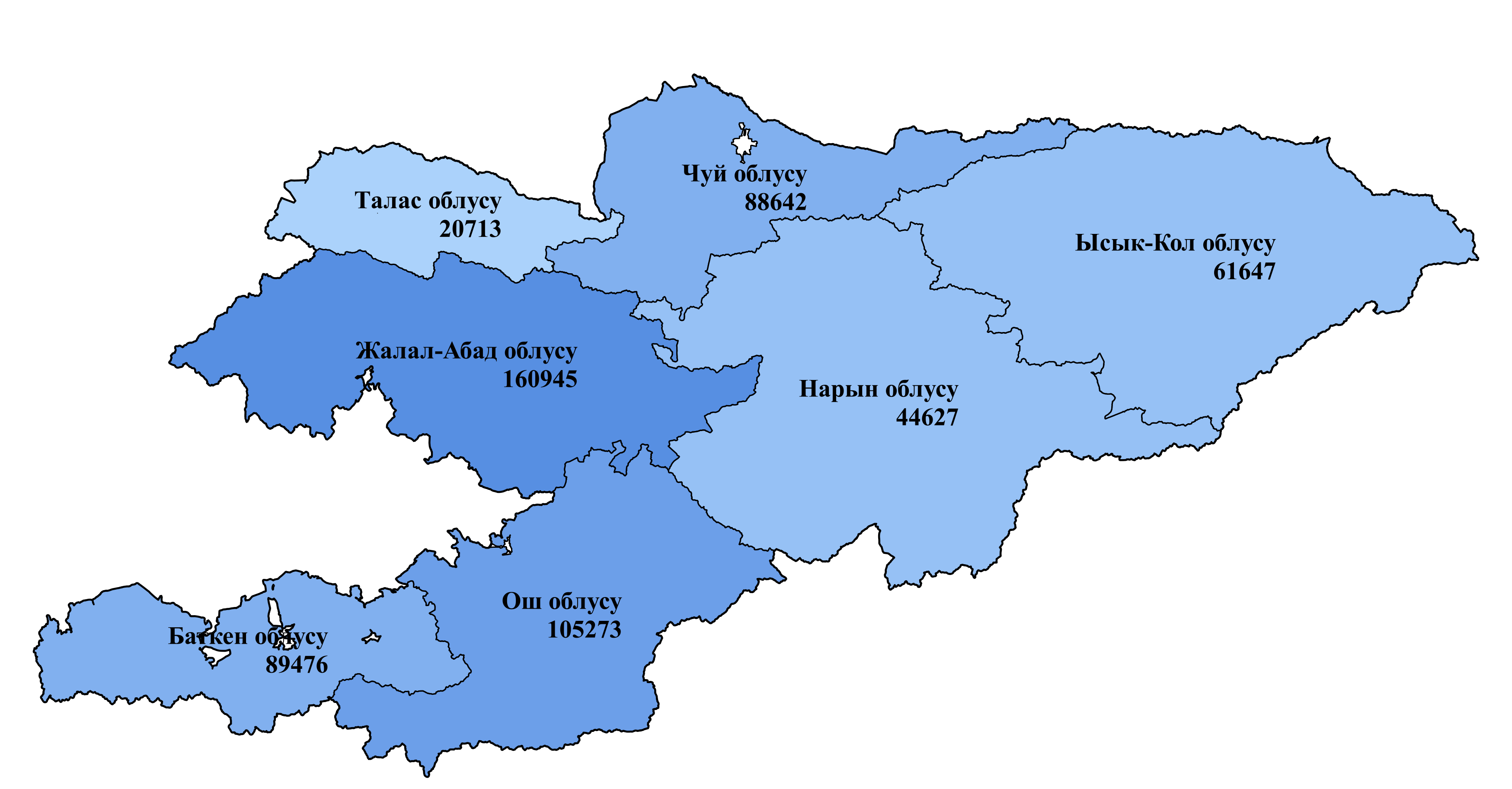 Кедейчиликте жашаган балдардын саны, аймактар боюнча