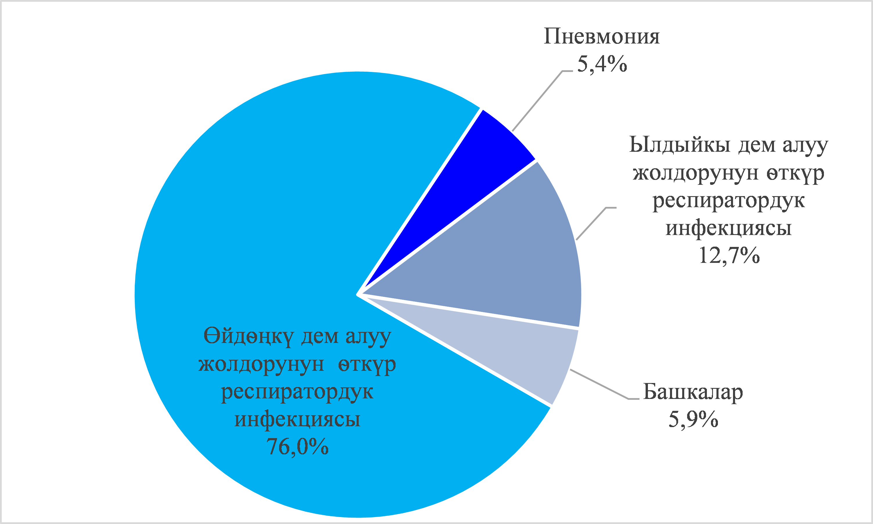 2020-ж. январь-майында өлүмдүн себептер боюнча пневмониядан ооруп 230 адам каза болду, же жалпы дем алуу органдарынын ооруларынын ичинен 31 пайыз (2019-ж. 278 адам же 34 пайыз).