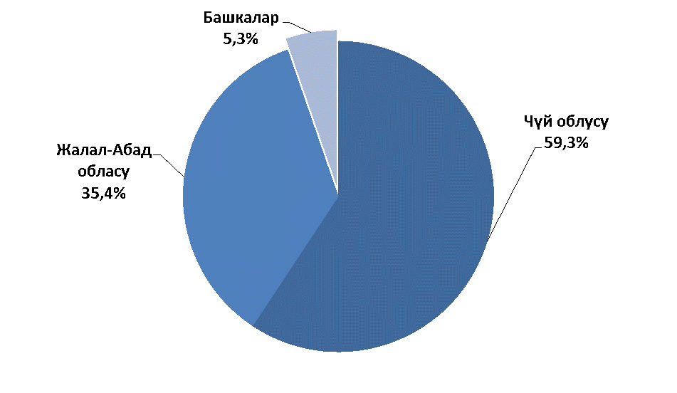 2018-жылдагы республиканын экономикасына Кытайдан келген тике чет өлкөлүк инвестициялардын дээрлик бардык көлөмү (94 пайыздан көбү) Чүй жана Жалал-Абад облустарынын ишканаларына багытталган.