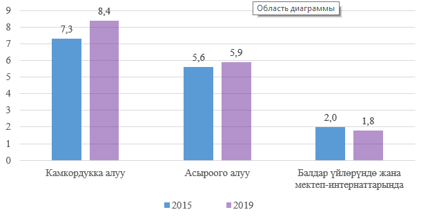 2019-жылы 1 055 бала мамлекеттин камкордугуна алынган, 713 бала асыроого берилген, анын 700ү – кыргызстандык үй-бүлө болсо, 13ү – чет өлкөлүк жарандар. Балдар үйлөрүндо жана интернеттарда ата-энесинин кароосу жок калган 2 миң жетим бала катталган.