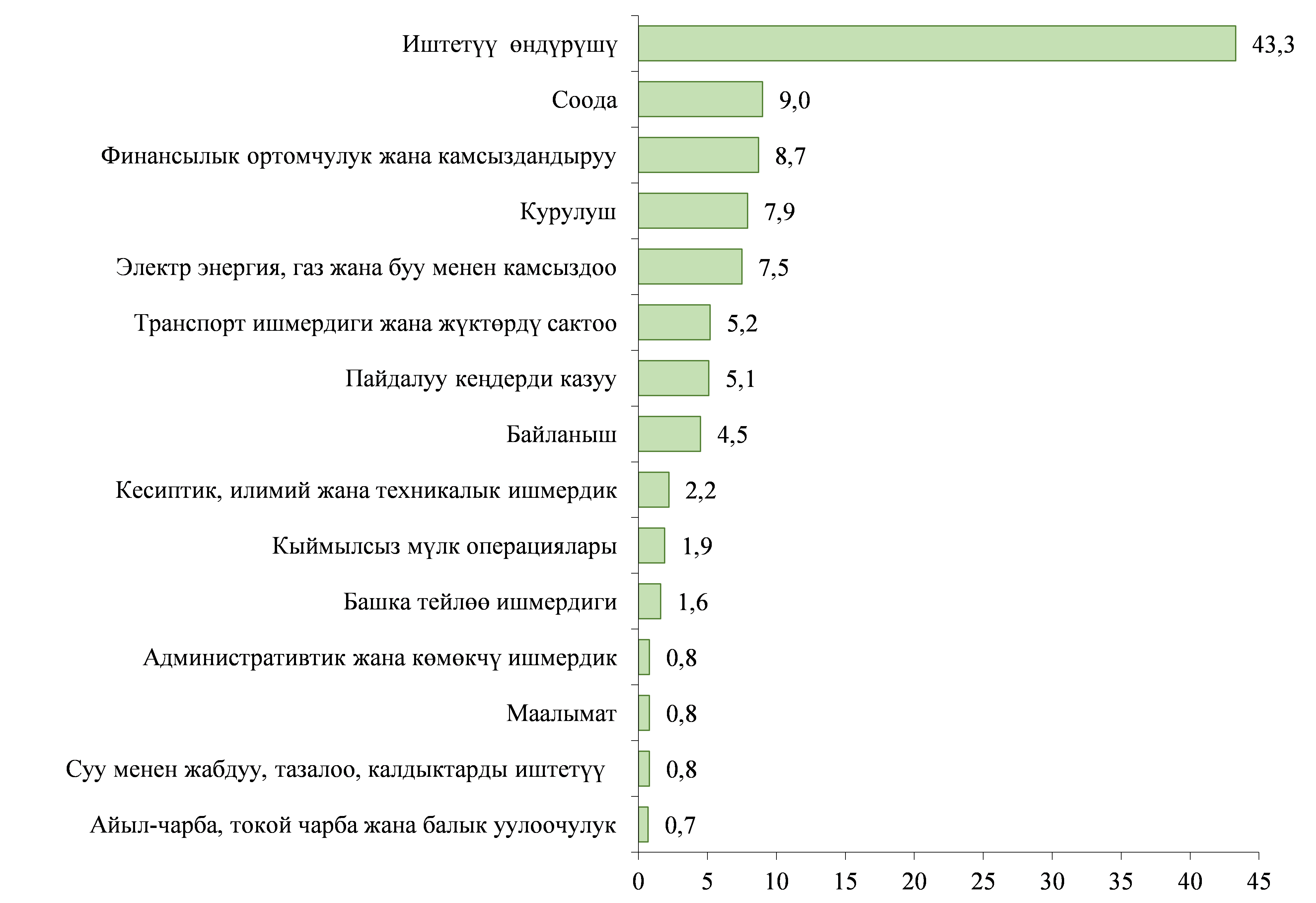 (экономика ишканаларынын кирешелеринин жалпы көлөмүнө карата пайыз менен)