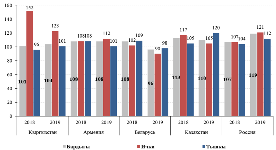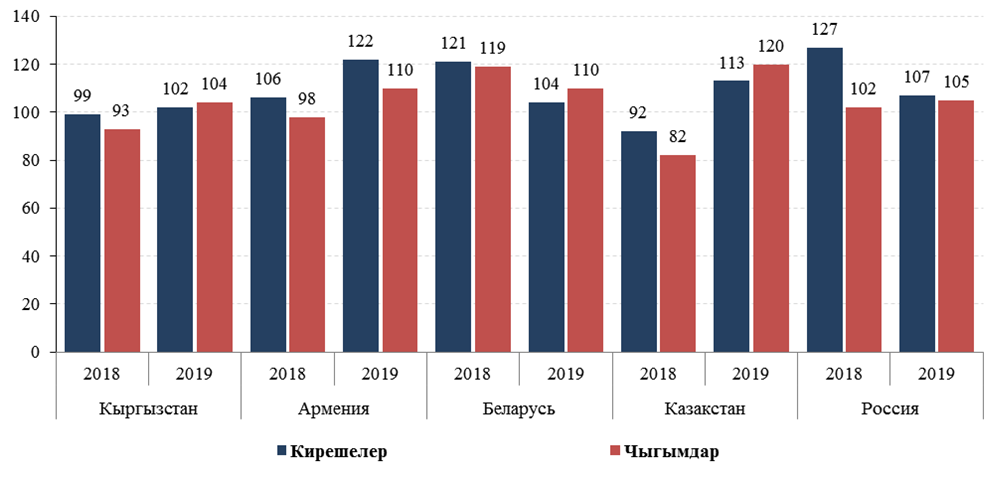 2019-жылдын январь-сентябрында республикалык бюджет Кыргыз Республикасында жана Казакстан Республикасында тартыштык, ал эми Россияда, Беларусь жана Армения Республикаларында - профицит менен аткарылды. Мында, Кыргыз Республикасында жана Казакстан Республикасында тартыштыктын көбөйүшү, ал эми Россияда бюджеттин профициттин көбөйүшү байкалган.