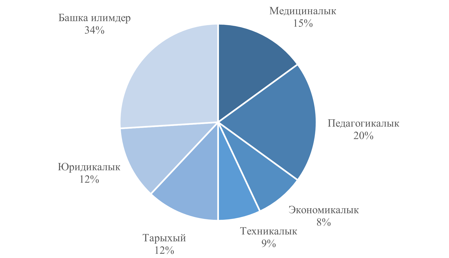 2024-жылы 591 аспиранттар бүтүрүлүп чыгарылган. Алардын эң көп үлүшү педагогикалык (20%), медициналык (15%), юридикалык жана тарыхый (12%) илимдин тармактарына туура келди.