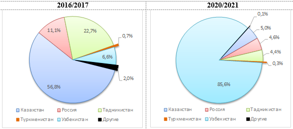 Ошол эле убакта 2016/2017- окуу жылынын башталышына салыштырмалуу Казахстандан келген студенттердин үлүшү тескерисинче, 57% дан 5% чейин төмөндөгөн.