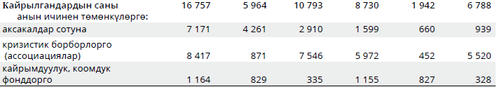 2018-жылы кризистик борборлорго, аксакалдар сотторуна жана башка адистештирилген