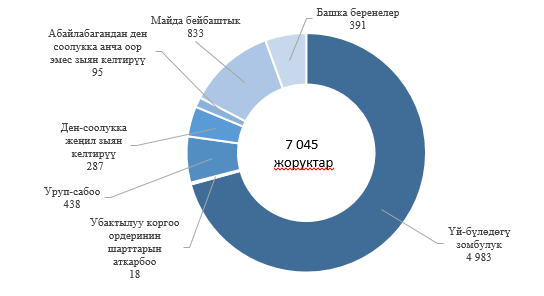 2019-жылы калкка социалдык-психологиялык жардам көрсөтүүчү кризистик борборлорго жана башка адистештирилген мекемелерге үй-бүлөдөгү зомбулук фактылары боюнча 8 миңге жакын адам кайрылган, алардын көпчүлүгү (85 пайыз) – аялдар.