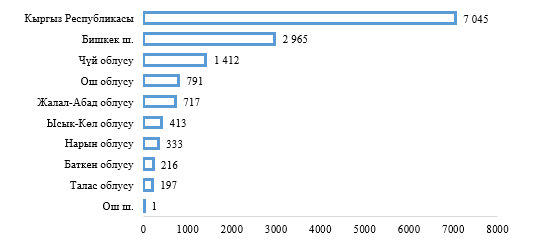 Үй-бүлөдөгү зомбулуктун эң көп учурлардын көпчүлүгү Бишкек (42%), Чүй (20%) жана Ош (11%) облустарында болгон.