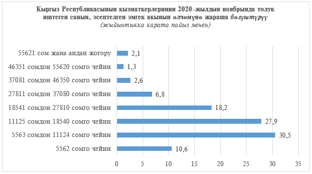 2020-жылдын ноябрына карата эмгек акынын өлчөмү боюнча кызматкерлердин санына бөлүштүрүү жүргүзүлдү