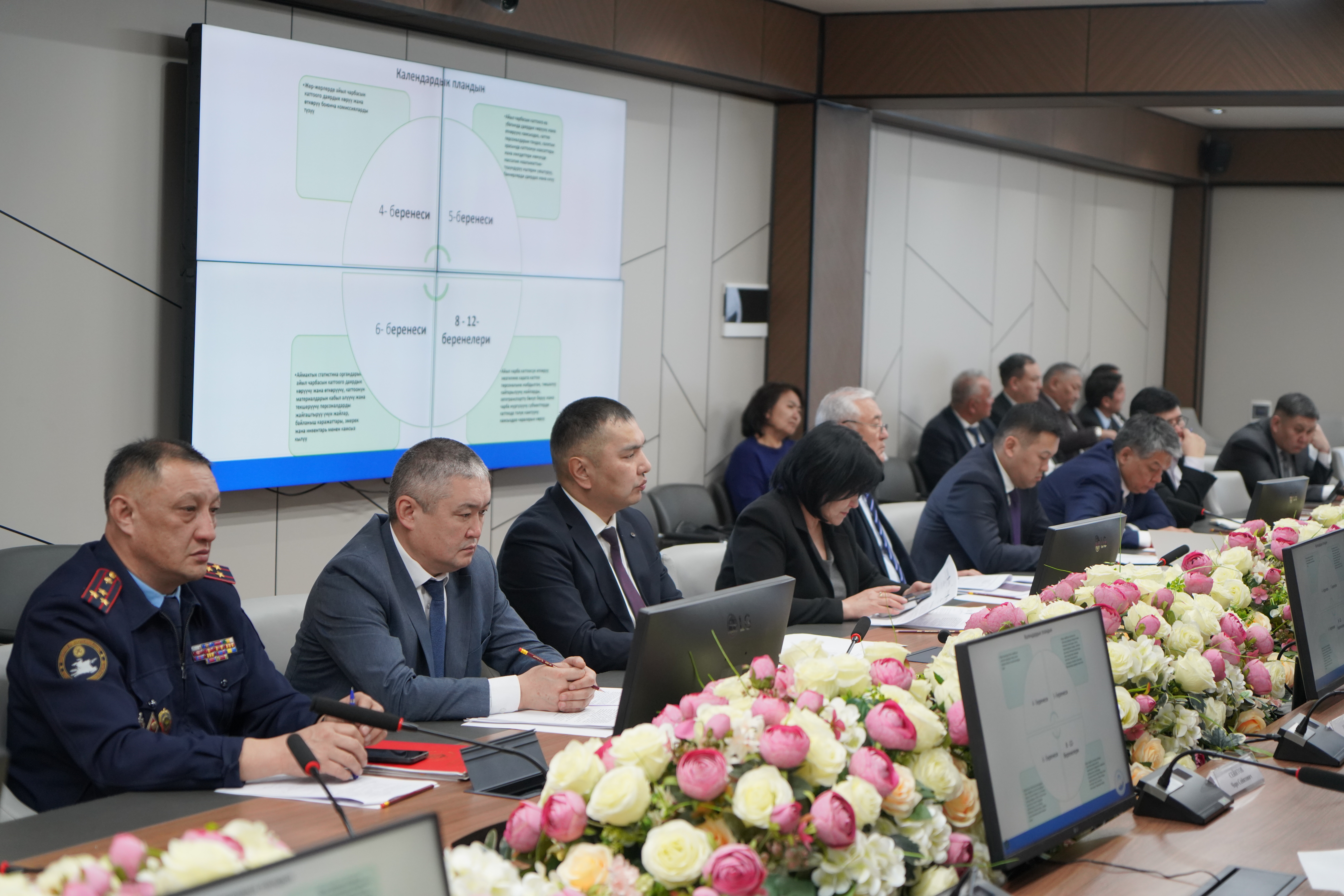 Жыйындын жүрүшүндө республика үчүн айыл чарба каттоосун өткөрүүнүн маанилүүлүгү, ага даярдык көрүү иштеринин жүрүшү, ошондой эле Кыргыз Республикасынын Президентинин облустардагы ыйгарым укуктуу өкүлдөрүнүн, райондук мамлекеттик администрациялардын башчыларынын жана шаар мэрлеринин милдеттери каралды.