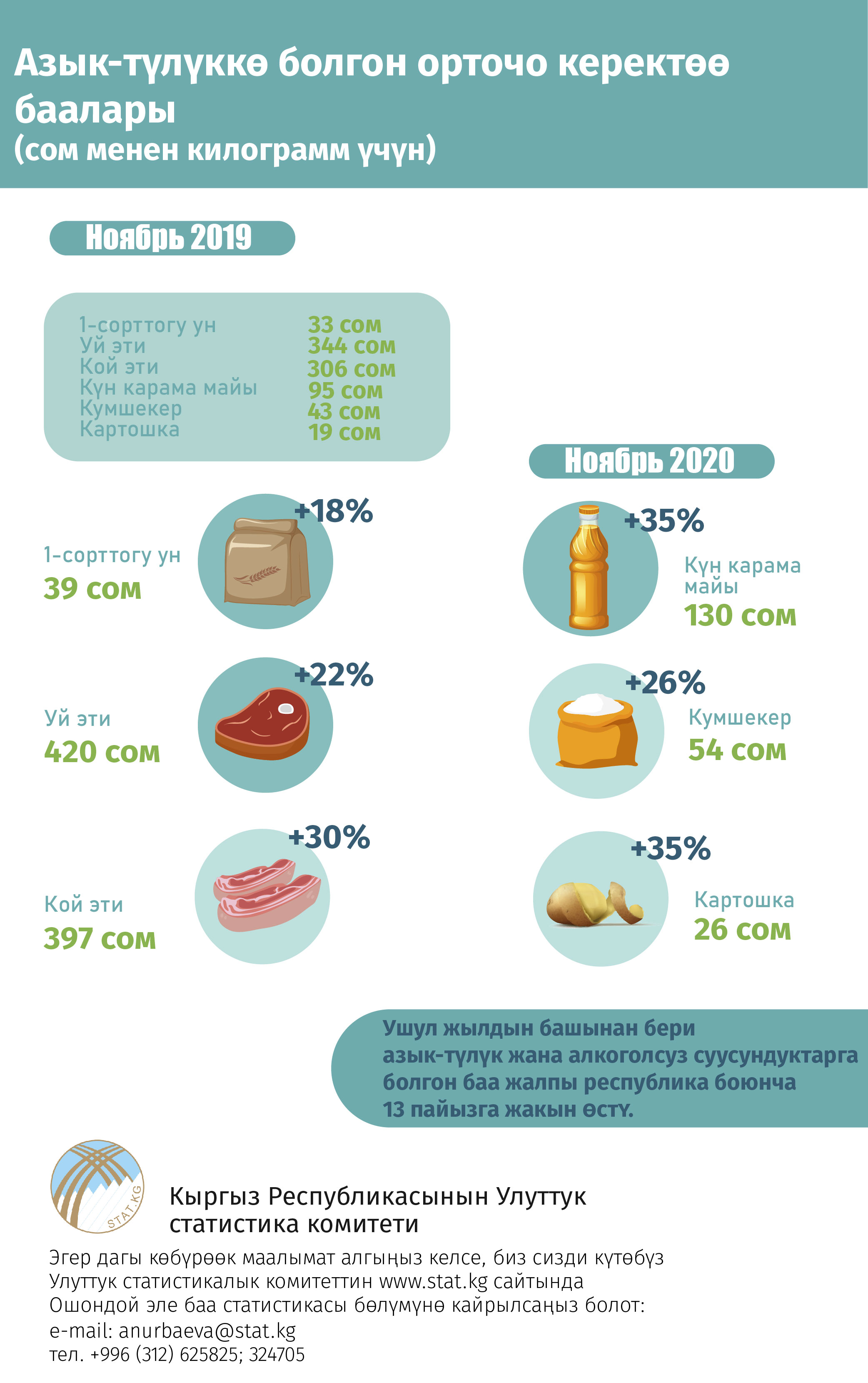 Азык-түлүккө болгон орточо керектөө баалары (инфографика)