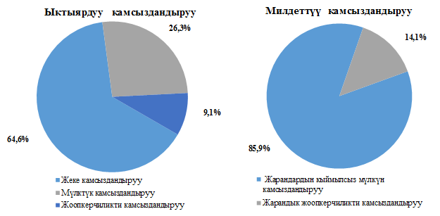2020-жылдын ичинде 7 миң бирдиктен ашык камсыздандыруу учурлар байкалды, алардын ичинен 78% ыктыярдуу жеке камсыздандырууга туура келди. Камсыздандыруу төлөмдөрүнүн жалпы суммасында 42% - ыктыярдуу мүлктүк камсыздандырууга жана 28%га жакыны - жеке медициналык камсыздандырууга туура келди.