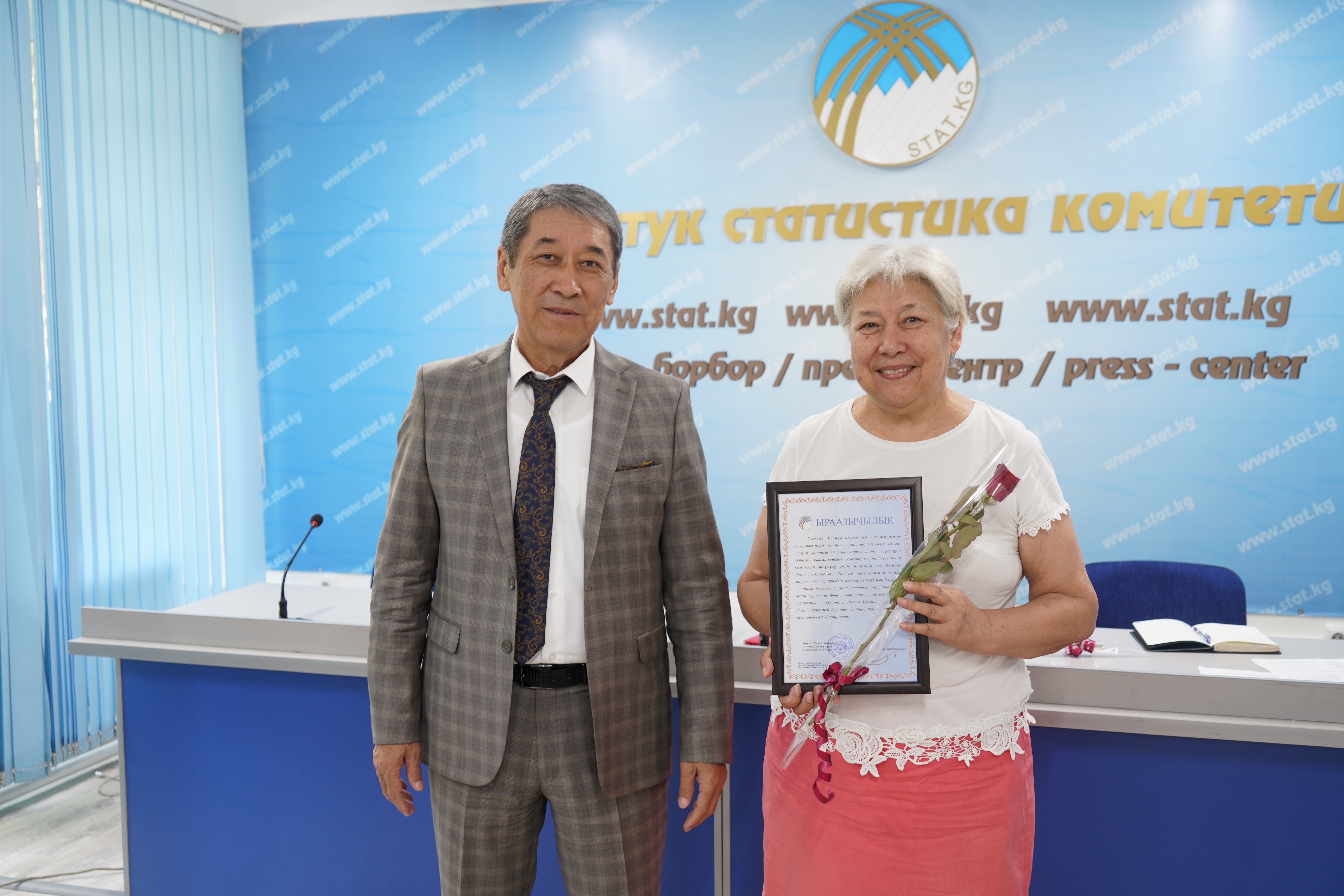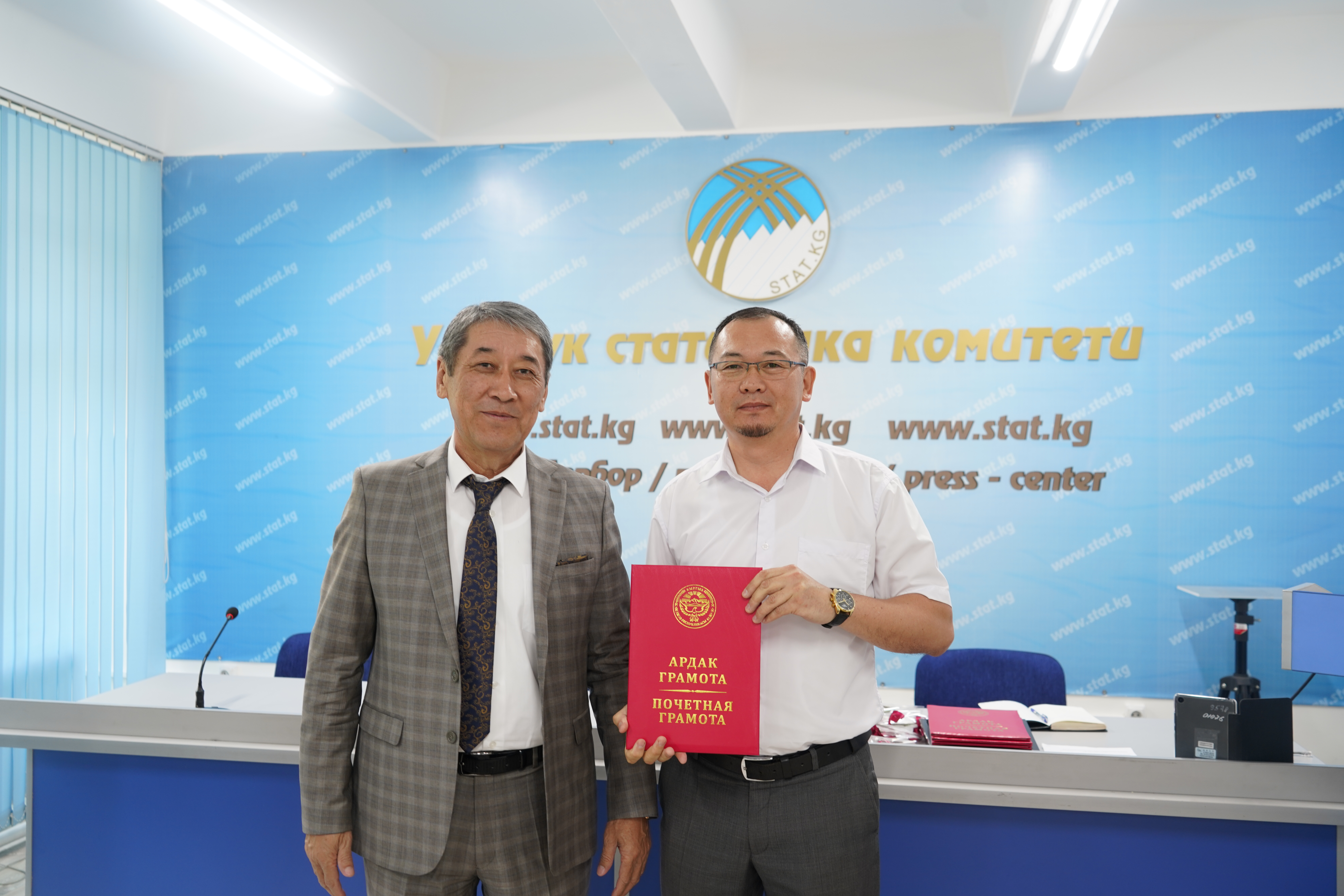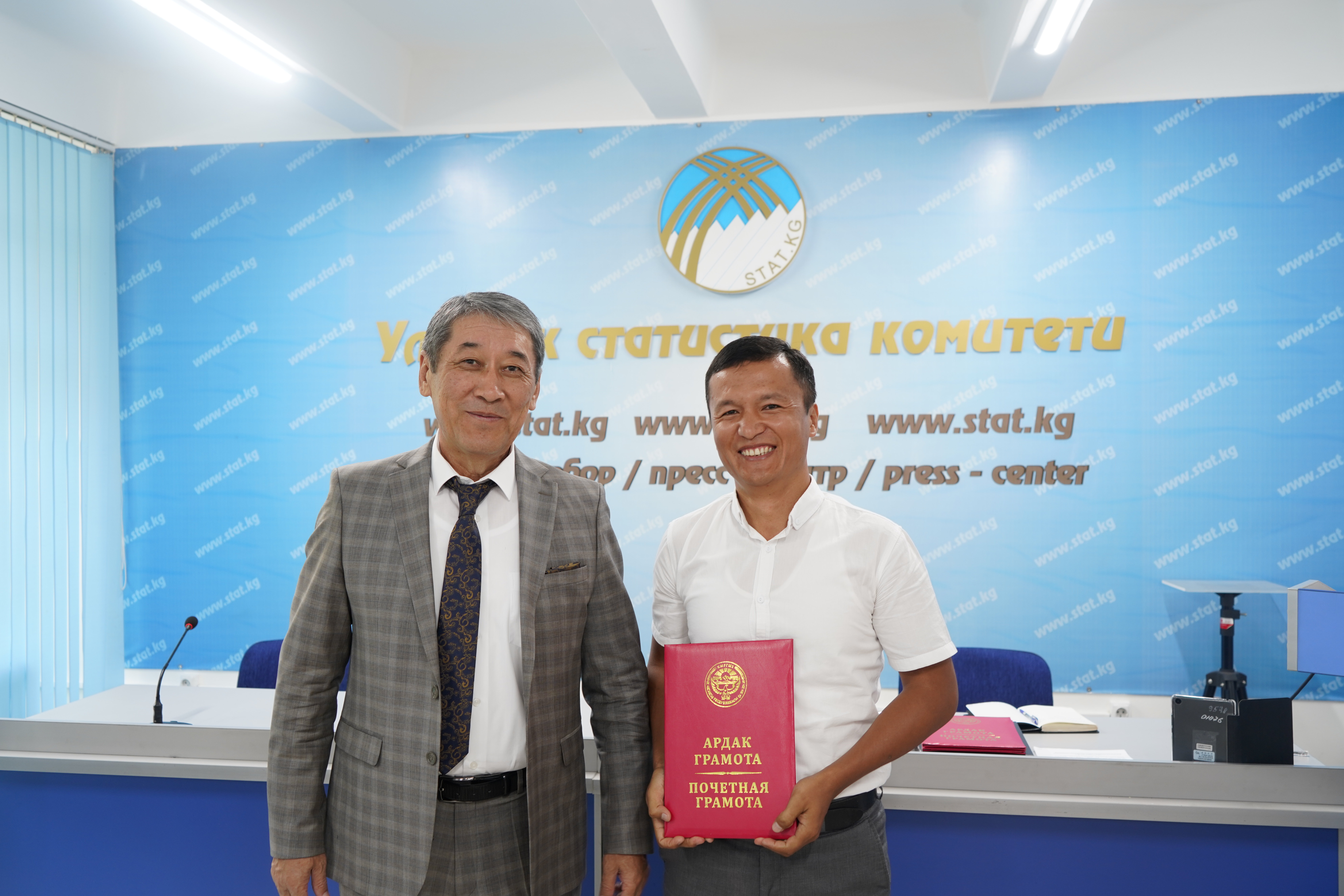 Бүгүн, 2022-жылдын 25-июлунда, Улутстаткомдун Төрагасы Бактыбек Кудайбергенов улуттук статистиканын өнүгүшүнө кошкон зор салымы үчүн мекеменин бир катар кызматкерлерине сыйлык тапшырып, аларга бекем ден соолук, бейпил турмуш жана иштерине ийгилик каалады.