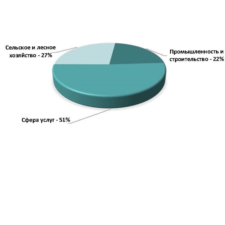 Структура занятости в целом характеризуется явным доминированием сельского хозяйства. На этот сектор (совместно с лесным хозяйством и рыболовством) приходится 26,8 процента всех занятых.