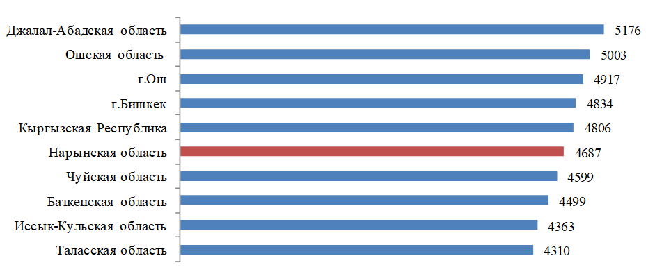 В 2019 году самая высокая стоимость прожиточного минимума наблюдалась в Джалал-Абадской области, самая низкая – в Таласской области