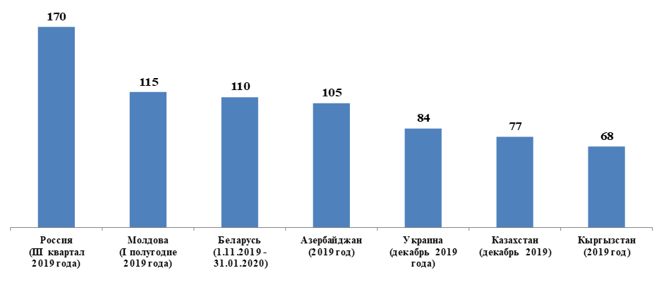 По оперативным данным, размещенным на официальных сайтах статистических служб стран СНГ, наибольшее значение прожиточного минимума отмечалось в России, наименьшее - в Кыргызстане.