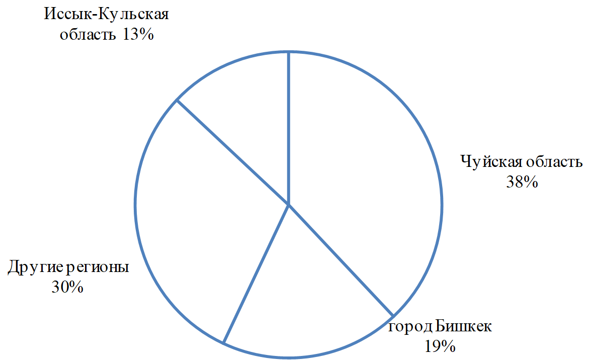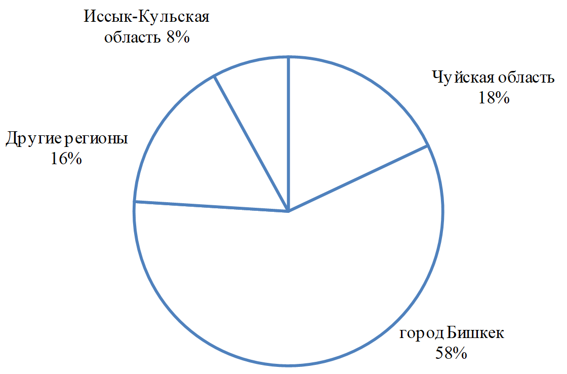Наибольший объем перевозок грузов в 2018 году пришелся на транспорт хозяйствующих субъектов Чуйской и Иссык-Кульской областей, а также г. Бишкек.