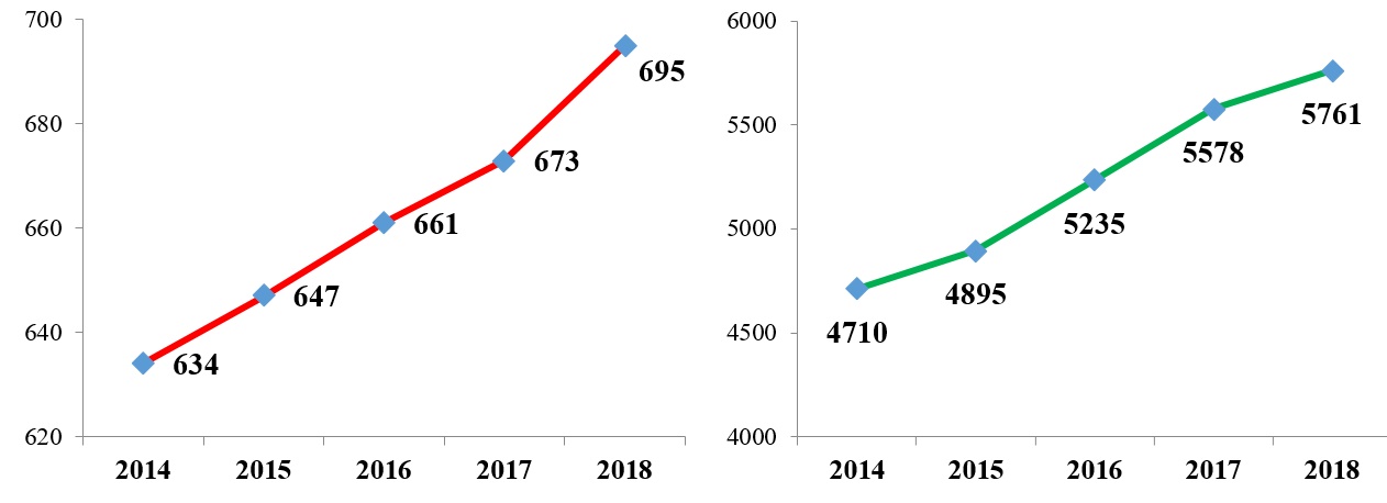 За пятилетний период (с 2014 по 2018 годы) размер социального пособия увеличился в 1,3 раза, а размер единого ежемесячного пособия по малообеспеченности - в 1,6 раза, составив на конец 2018 года в расчете на одного получателя 875,7 сома.