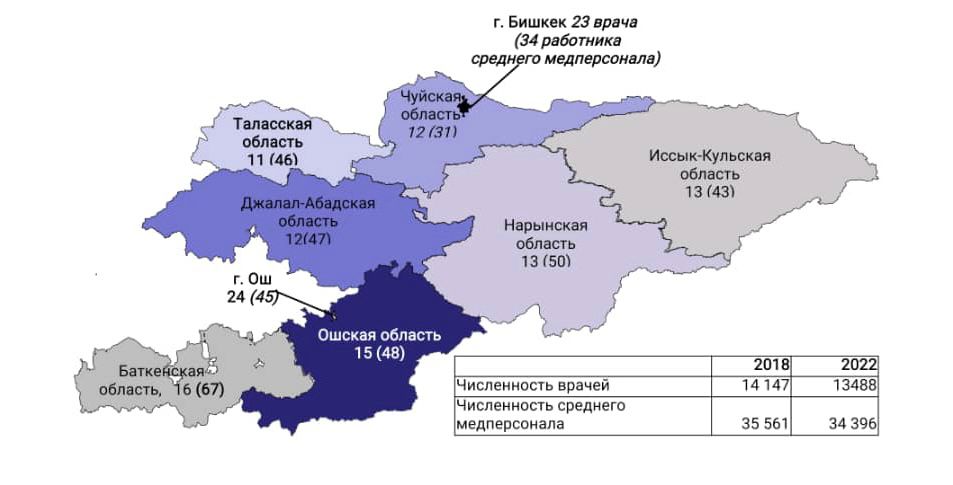 Медико-санитарную помощь населению в 2022 году обеспечивали более 13 тыс. врачей и более 34 тыс. среднего медицинского персонала. На 10 тысяч населения республики приходился 19 врач и 49 сотрудника из числа среднего медицинского персонала.