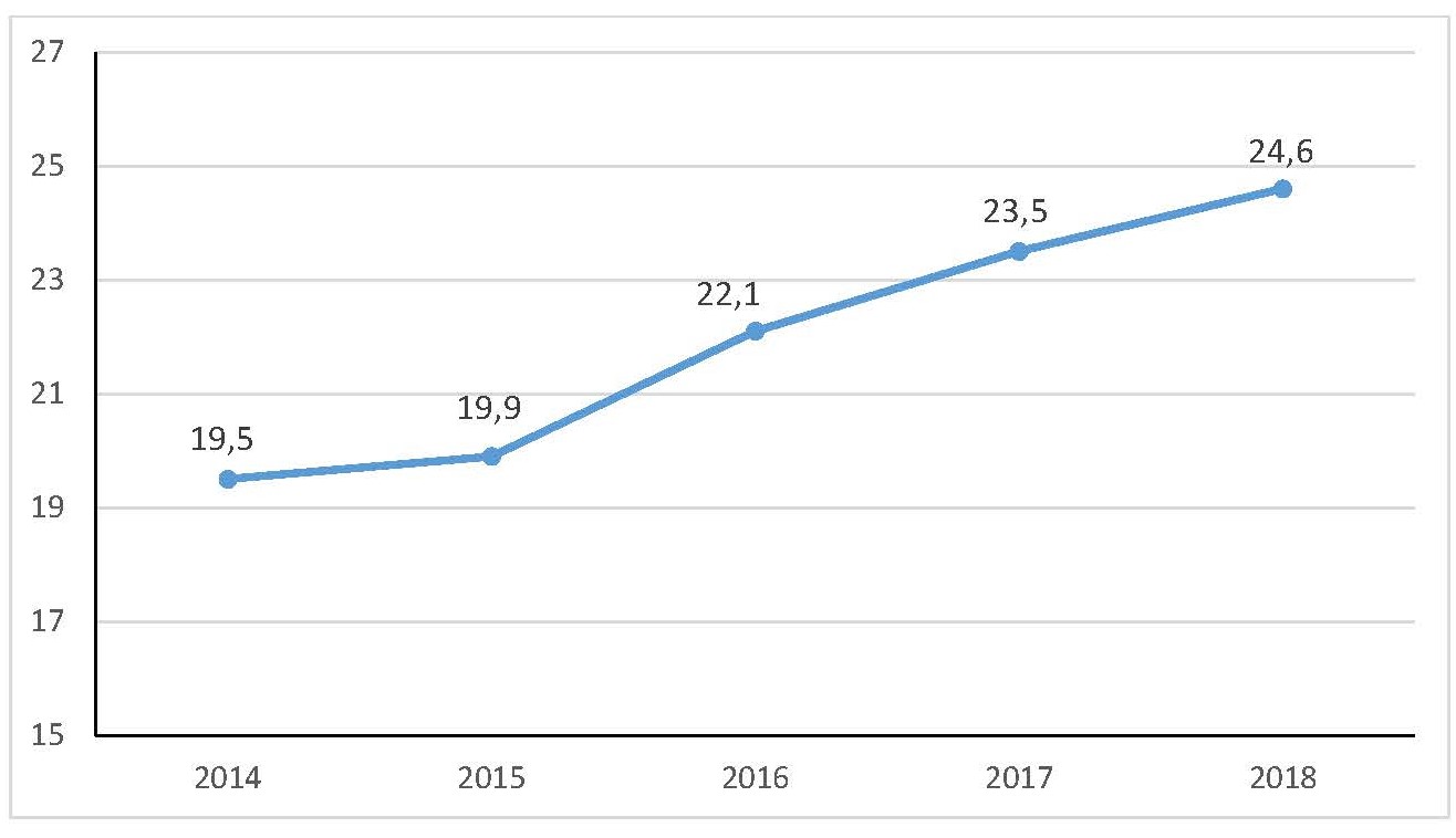 В 2018/2019 учебном году в первый класс принято 143 тыс. учащихся, что по сравнению с началом 2014/2015 учебного года более чем на 19 процентов больше.