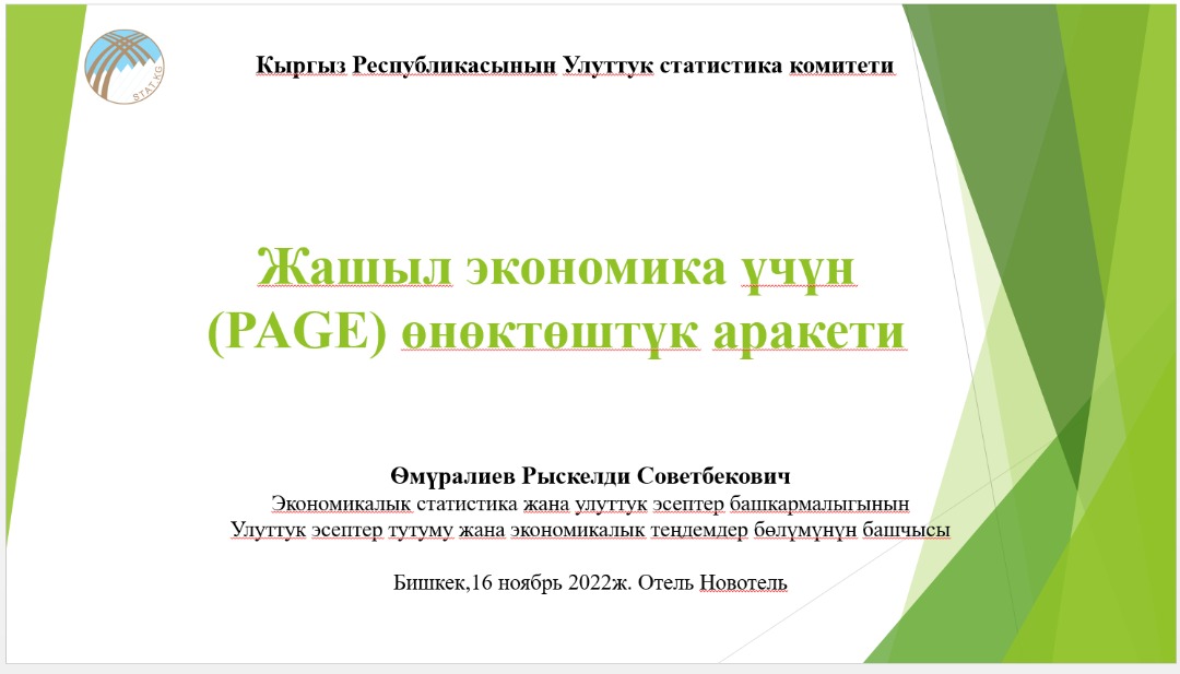 Министерством экономики и коммерции Кыргызской Республики, являющимся основным бенефициаром Инициативы ООН и координационным государственным органом при реализации PAGE в Республике, 16 ноября 2022 года проведено рабочее заседание.