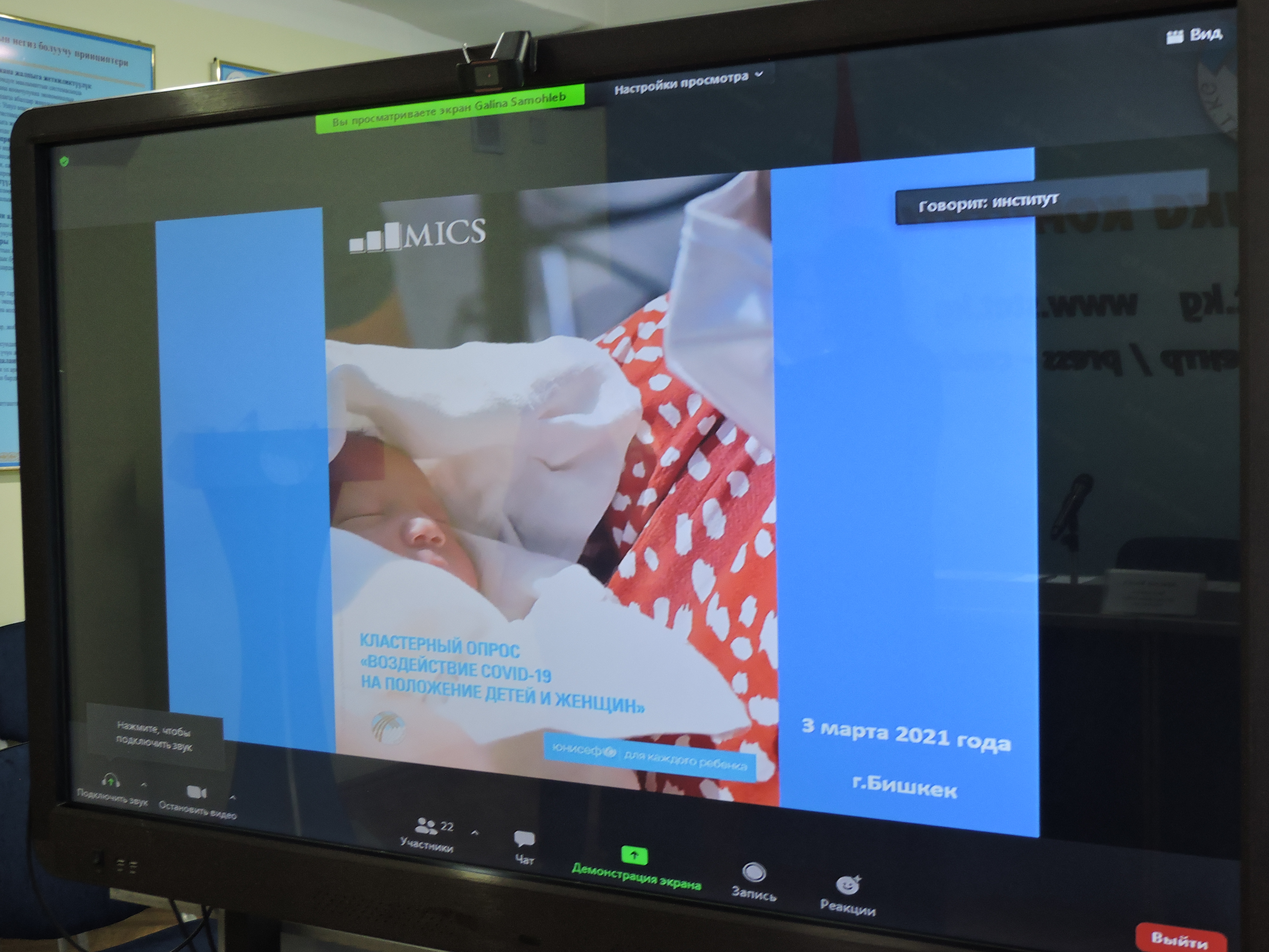 3 марта 2021 года Нацстатком провел онлайн семинар по итогам кластерного опроса «Воздействие Covid-19 на положение детей и женщин в Кыргызстане». В работе онлайн-семинара участвовали руководитель аппарата Национального статистического комитета Кыргызской Республики Эльмира Алымкулова, Представитель Детского фонда ООН в Кыргызской Республике Кристин Жольм, а также представители ряда государственных органов.