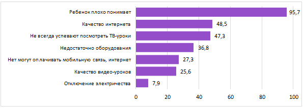 Дистанционным обучением было охвачено около 83% детей в возрасте 7-17 лет. Доля детей, родители которых не удовлетворены процессом онлайн обучения составила 78 процентов.