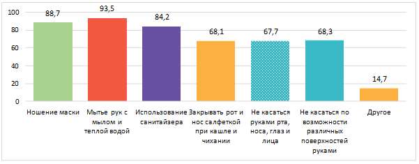 Доля детей, чьи родители обсудили с детьми соблюдение мер предосторожности в целях снижения риска заражения COVID-19, составила более 98%.