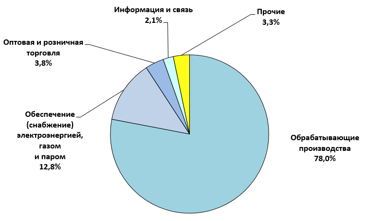 Основной их объем направлен в предприятия обрабатывающих производств (78,0 процента от общего объема привлеченных инвестиций, из них 97,6 процента – в производство пищевых продуктов, включая напитки), сферу обеспечения (снабжения) электроэнергией, газом и паром (12,8 процента), оптовую и розничную торговлю (3,8 процента), сферу информации и связи (2,1 процента).