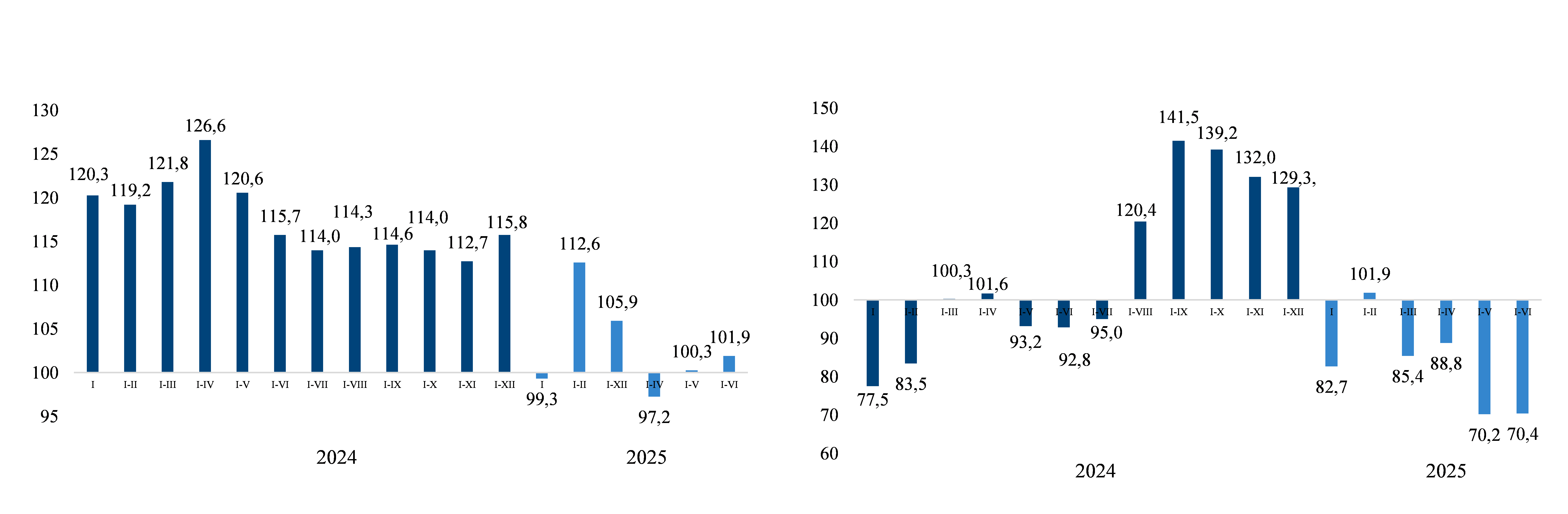 Рост промышленного производства по сравнению с январем-июлем 2024 года обеспечен повышением объемов производства фармацевтической продукции (в 2,4 раза), пищевых продуктов (включая напитки) и табачных изделий (на 49,0 процента), резиновых, пластмассовых изделий и строительных материалов (на 33,5 процента), деревянных и бумажных изделий, продукции полиграфической деятельности (на 30,6 процента), химической продукции (на 29,3 процента), очищенных нефтепродуктов (на 5,8 процента), а также добычи полезных ископаемых (на 14,6 процента).