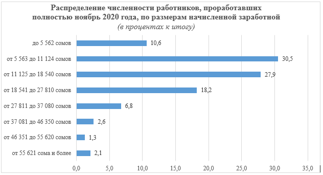 Нацстатком Кыргызской Республики подвел итоги ежегодного обследования численности работников предприятий и организаций, проработавших полностью ноябрь 2020 года, по размерам начисленной заработной платы.