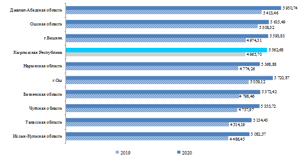 Величина прожиточного минимума в среднем на душу населения в IV квартале 2020 года в целом по республике составила 5 562,68 сома и по сравнению с соответствующим периодом прошлого года возросла на 12 процентов.