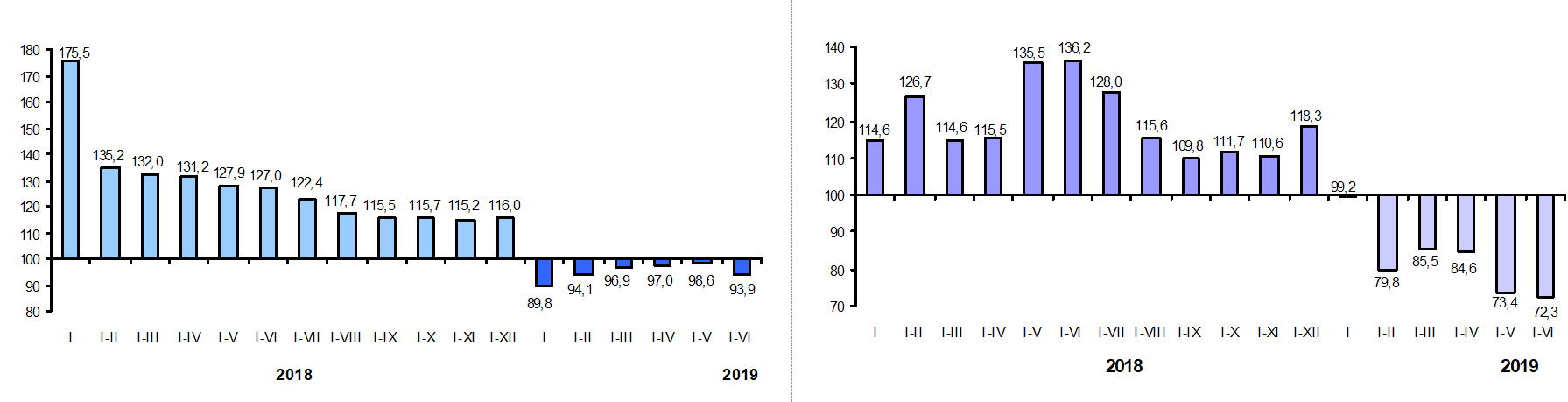 Внешнеторговый оборот Кыргызской Республики, по предварительным данным, в январе-июне 2019 года составил 3,2 млрд. долларов США и по сравнению с январем-июнем 2018 года снизился на 7,8 процента, при этом экспортные поставки увеличились на 4,2 процента, а импортные поступления, напротив, сократились на 11,6 процента.