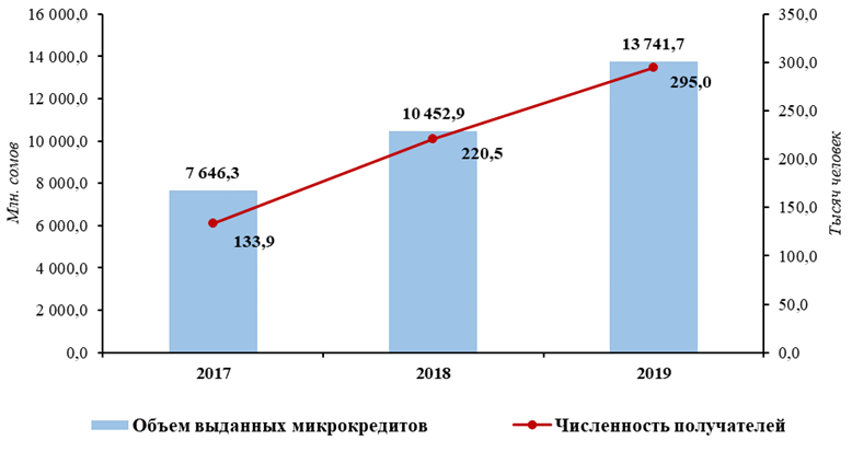 В январе-июне текущего года микрокредитными организациями выдано кредитов на сумму 13 741,7 млн. сомов, при этом число получателей составило 295 тысяч человек. По сравнению с соответствующим периодом прошлого года численность населения, охваченного микрокредитованием, увеличилась на 33,8 процента, а объем выданных микрокредитов - на 31,5 процента.