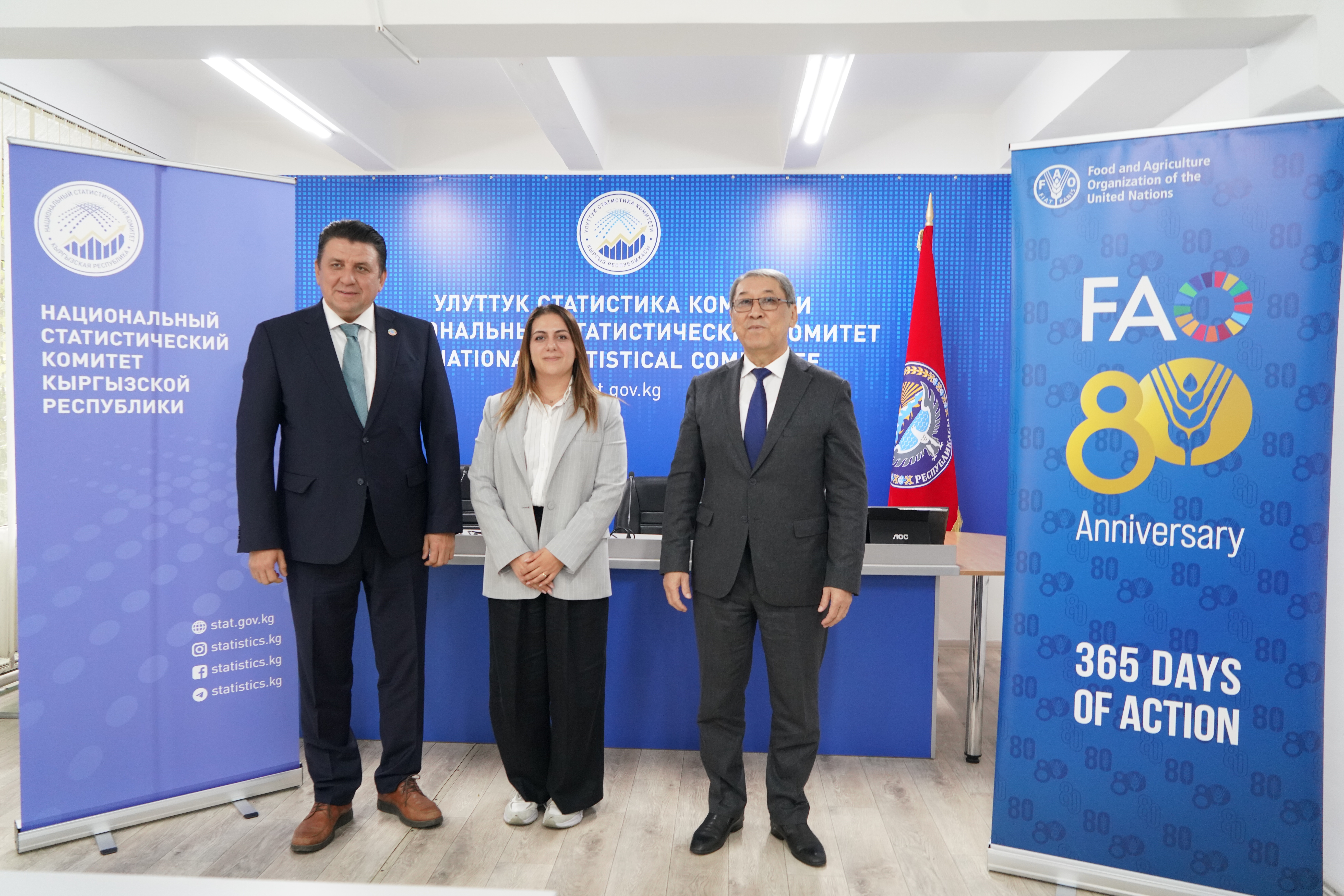 3 октября 2025 года в Нацстаткоме состоялась встреча с участием представителя ФАО в Кыргызстане Олега Гучгельдыева и аналитика ФАО по продовольственной безопасности Сары Заркарян, в рамках технического обучающего семинара по индикаторам ЦУР.
