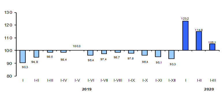 Объем промышленной продукции в январе-апреле 2020 года составил около 99 миллиардов сомов и по сравнению с январем-апрелем прошлого года уменьшился на 2,8 процента за счет сокращения объемов производства очищенных нефтепродуктов (на 63,1 процента), прочих неметаллических минеральных продуктов (на 36,7 процента), производства кожи и изделий из нее, обуви (на 27,6 процента), а также напитков (на 11,9 процента).