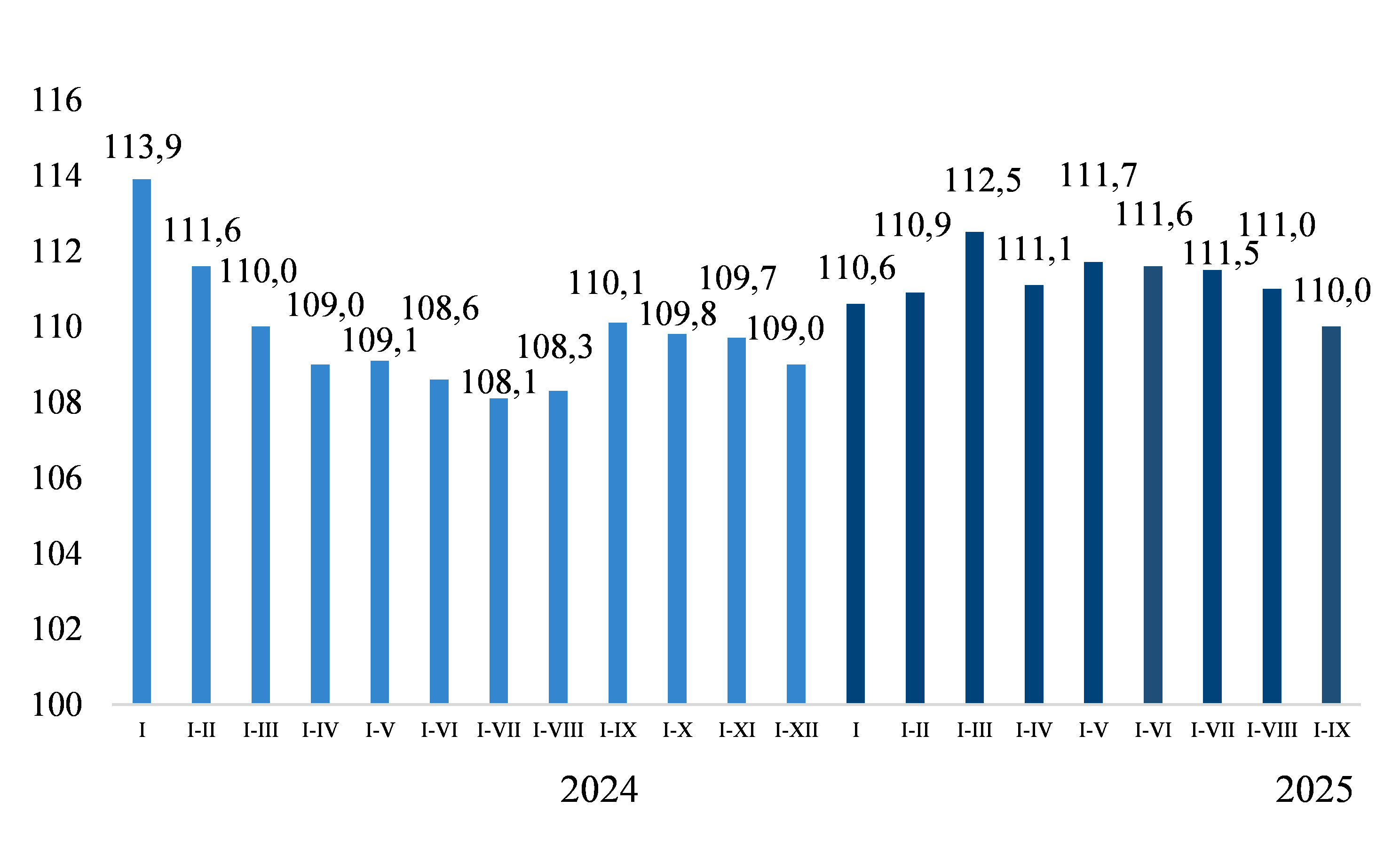 Валовой внутренний продукт в январе-сентябре 2025 года, по предварительной оценке, составил 1 240 ,5 миллиарда сомов и по сравнению с январем-сентябрем 2024 года увеличился на 10,0 процента.