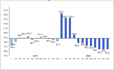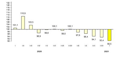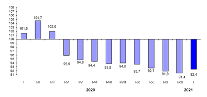 В январе 2021 года спад экономики составил 7,6 процента