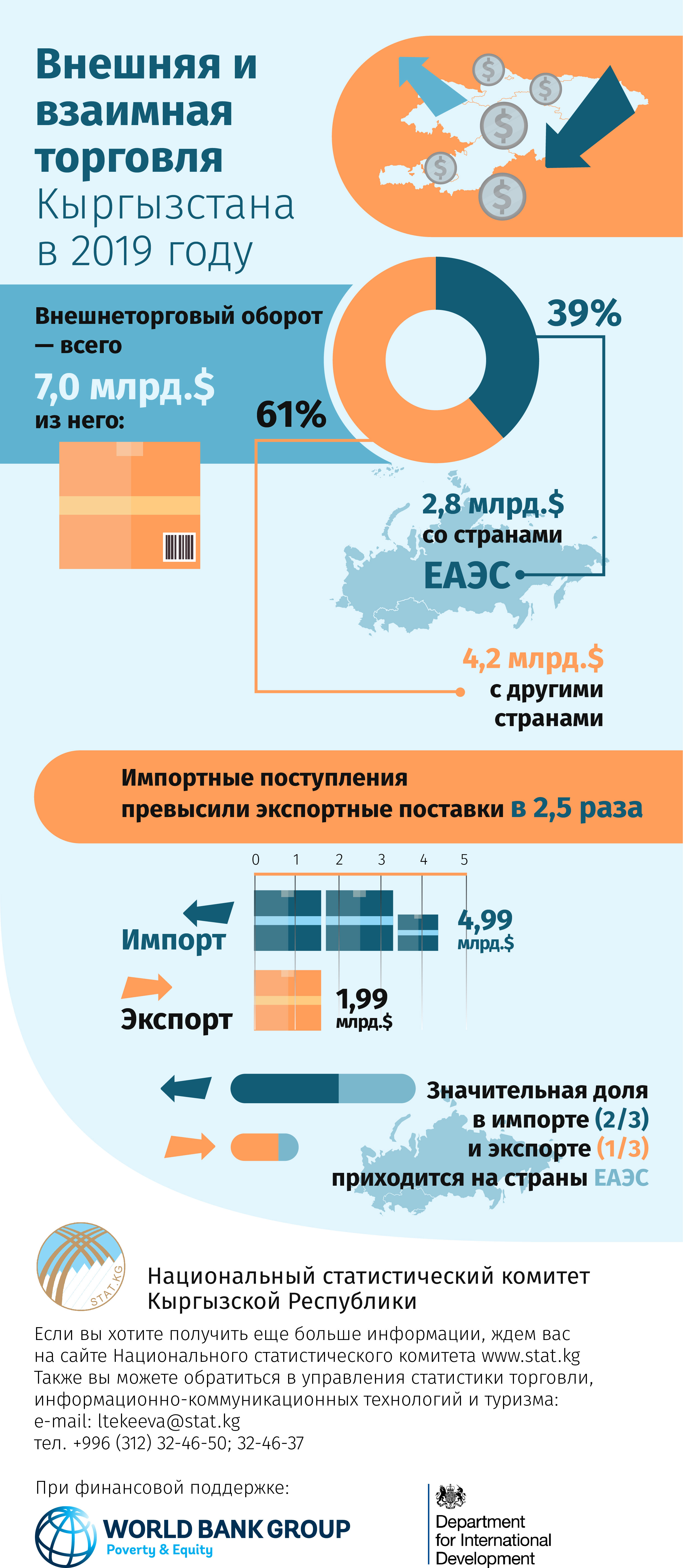 Инфографика: Внешняя и взаимная торговля в Кыргызстане в 2019 году